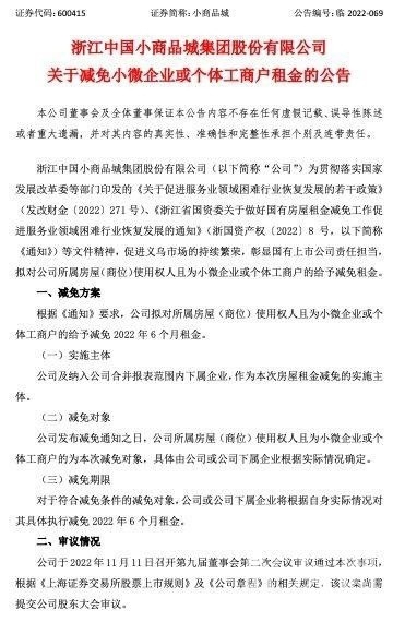 財聯(lián)社11月11日電,小商品城公告,公司擬對所屬房屋(商位)使用權(quán)人且為小微企業(yè)或個體工商戶的給予減免2022年6個月租金。本次減免租金預計減少公司2022年度營業(yè)收入約10億元,約占公司2021年度營業(yè)收入60.34億元的17%,預計影響公司2022年歸屬于上市公司股東的凈利潤約7億元,約占2021年度歸屬于上市公司股東的凈利潤13.34億元的52%,約占2022年前三季度歸屬于上市公司股東的凈利潤16.20億元的43%。 |