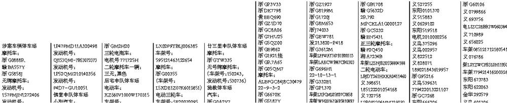 下列機動車是在2022年10月1日至2022年10月31日扣留涉案車輛,根據(jù)《中華人民共和國道路交通安全法》《中華人民共和國道路交通安全法實施條例》等相關(guān)法律法規(guī)規(guī)定,現(xiàn)對義烏市公安局交通警察大隊于執(zhí)勤執(zhí)法、事故處理工作中依法扣留的下列逾期未處理的涉案車輛予以公告,公告期三個月。請車輛駕駛?cè)、所有人或管理人在公告期提供被扣留車輛的合法證明,補辦的相應(yīng)手續(xù)到相關(guān)單位接受處理,逾期仍未接受處理的,本大隊將依法對相關(guān)車輛進行處置。 電話查詢:85553110 義烏市公安局交通警察大隊 |