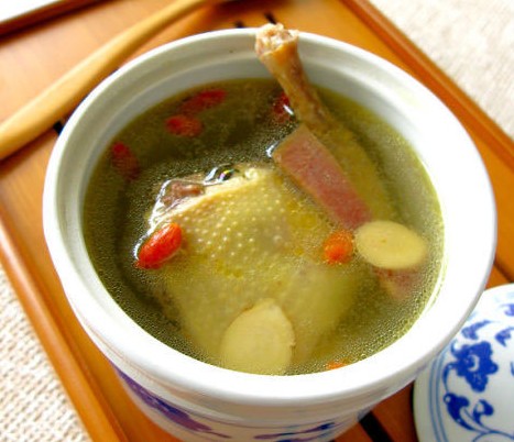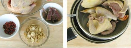 乳鴿、黃芪、枸杞、火腿、姜片、鹽。