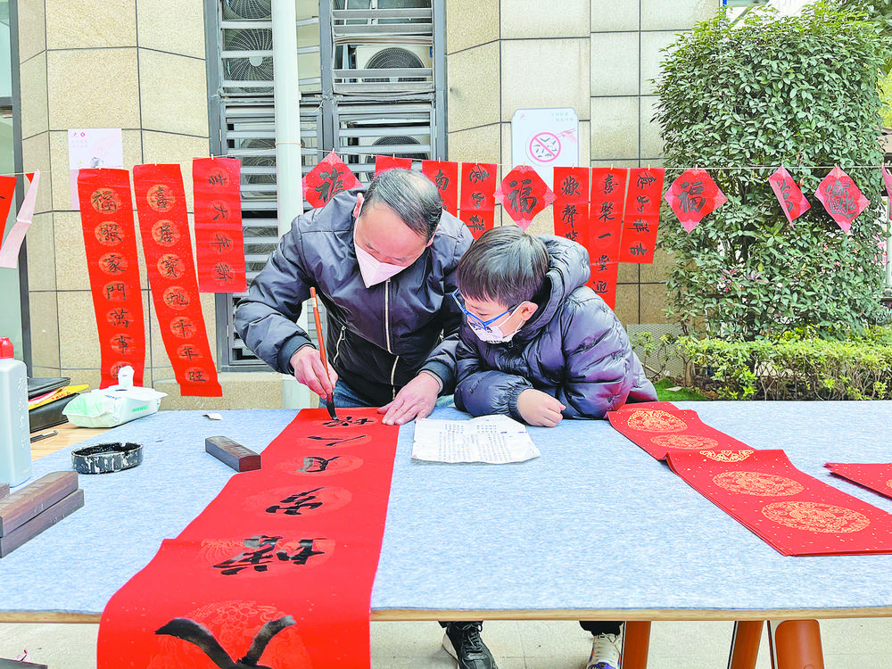 為迎接即將到來的新春佳節(jié),1月6日,稠江街道新時代文明實踐所聯(lián)合永祥社區(qū),開展“喜迎兔年 福進萬家”迎新春送春聯(lián)活動,將節(jié)日祝福送到社區(qū)居民身邊。 當日,轄區(qū)書法愛好者早早來到永祥社區(qū)黨群服務中心,在方桌上鋪紙架硯、調墨潤筆、揮毫潑墨。不一會,一副副寫滿新春祝福的楹聯(lián)躍然紙上!坝灿河毁F,接財接福接平安”“高居寶地財興旺,一帆風順吉星照”……紅彤彤的紙上,行書、楷書、草書等字體各顯神韻,飄著墨香,帶來濃濃的年味。 社區(qū)工作人員第一時間將喜慶吉祥、散發(fā)墨香的春聯(lián)送到居民手中,老黨員龔爺爺說:“字寫得真漂亮,這樣‘自制’的春聯(lián),比外面買的更有意義! 據悉,此次活動中,書法老師們共書寫了500多張春聯(lián)和福字。紅紅火火的春聯(lián)飽含著深深的新春祝福,傳遞著滿滿的鄰里情。 |