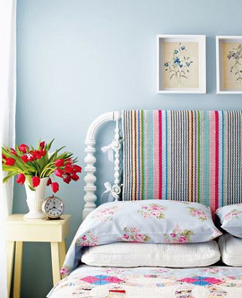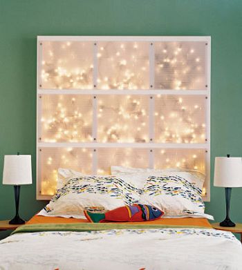 星光閃耀床頭 這塊床頭板能讓你聯(lián)想到圣誕節(jié)時(shí)透過(guò)結(jié)霜的玻璃窗看星星的情景。它是由結(jié)構(gòu)簡(jiǎn)單的木質(zhì)框架組成,首先將它釘在墻面上,并在木框架后面掛上幾串小燈,你可以選擇節(jié)日或開(kāi)PARTY后剩余下的彩燈。節(jié)日串燈的光線透過(guò)半透明板過(guò)濾,顯得格外柔和浪漫。 靈感之處:營(yíng)造浪漫氛圍的同時(shí),也可以作為臥室的輔助光源。 掛毯改良新床頭 家居賣場(chǎng)會(huì)有耐磨的彩條紋掛毯,既可當(dāng)墊子鋪在沙發(fā)上也可鋪在地上當(dāng)腳墊,我們可以開(kāi)發(fā)它的全新用途。挑選一塊比床頭板稍窄一些的掛毯直接搭在床頭上,兩邊分別用窗簾鉤夾將毯子固定在床柱上,并用絲帶系出蝴蝶結(jié)。一個(gè)粗獷中帶點(diǎn)溫馨感的新床頭就誕生了。 靈感之處:用毯子作為床頭裝飾簡(jiǎn)單易行,還能讓頭部與冰冷的床架巧妙分隔。需要注意的是,毯子的花色和風(fēng)格要與床品的風(fēng)格相似,和諧一致,才能起到更好的裝飾作用。 |