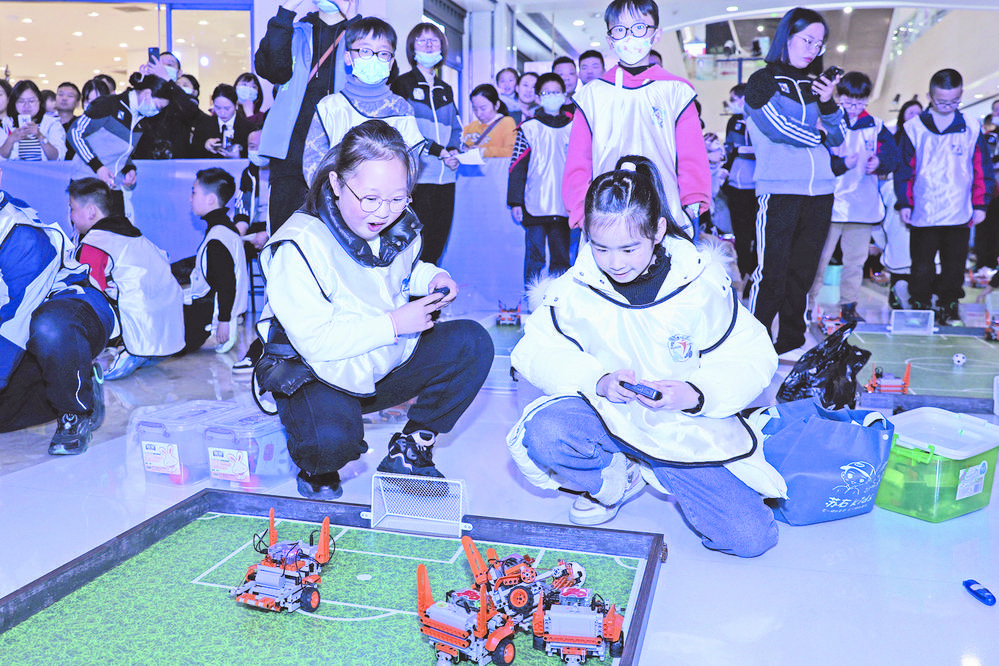 3月4日,義烏市第五屆“義創(chuàng)杯”中小學(xué)、幼兒園創(chuàng)客教育大賽在義烏之心中庭開(kāi)賽,吸引了不少家長(zhǎng)、游客吶喊助威,不少觀(guān)眾用手機(jī)拍攝比賽場(chǎng)面。這次大賽由市教育局和市科技協(xié)會(huì)主辦,市教育研修院承辦。 “義創(chuàng)杯”中小學(xué)、幼兒園創(chuàng)客教育大賽開(kāi)始于2019年,現(xiàn)已吸引全市近50所學(xué)校加入,每賽季參賽規(guī)模高達(dá)5000余人。 “義創(chuàng)杯”大賽實(shí)施賽季制,與學(xué)年一致,9月至下年6月為一個(gè)賽季,目的是將創(chuàng)客教育貫穿于整個(gè)教學(xué)過(guò)程中,讓廣大青少年在參與活動(dòng)、參與實(shí)踐中有所發(fā)明、有所創(chuàng)造、有所體驗(yàn),從而使他們領(lǐng)會(huì)科學(xué)、感受科學(xué)、走近科學(xué),進(jìn)一步增強(qiáng)動(dòng)腦、動(dòng)手的實(shí)踐能力,推動(dòng)科學(xué)與教育的融合。同時(shí),提升學(xué)生和青年教師運(yùn)用數(shù)字化工具,跨學(xué)科分析問(wèn)題、解決問(wèn)題的能力以及團(tuán)隊(duì)協(xié)作和創(chuàng)新能力,從而為國(guó)家培育基礎(chǔ)科學(xué)研究人才的后備力量奠定基石。 在義烏市獲得第二批全國(guó)科普示范市榮譽(yù)稱(chēng)號(hào)的背景下,今年本項(xiàng)賽事的規(guī)格得以提升,首次由市教育局和市科學(xué)技術(shù)協(xié)會(huì)聯(lián)合主辦,改變了過(guò)去只在教育系統(tǒng)內(nèi)部“養(yǎng)在深閨人未識(shí)”的局面,打破了場(chǎng)地限制,積極地走出校園、深入社會(huì)。 本賽季比賽共設(shè)置8個(gè)競(jìng)賽單項(xiàng),涵蓋無(wú)人機(jī)、智能機(jī)器人、人工智能、創(chuàng)意智造、創(chuàng)客任務(wù)、編程、媒體制作等諸多領(lǐng)域。把比賽場(chǎng)地設(shè)在人流大的商場(chǎng),是為了讓更多的家長(zhǎng)了解并支持“義創(chuàng)杯”,吸引更多的學(xué)生參與,更加廣泛地營(yíng)造義烏市科普科創(chuàng)氛圍。 |