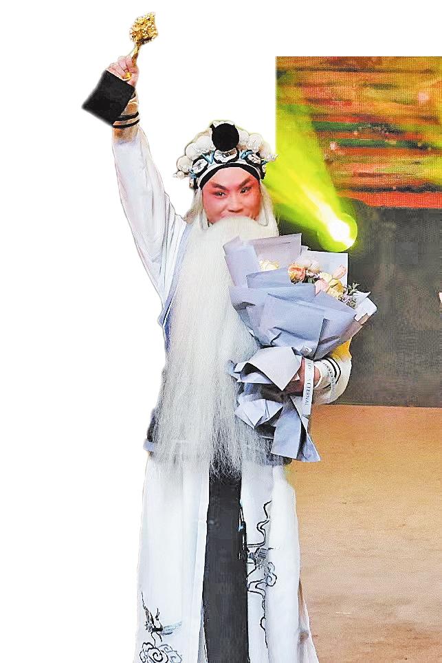 “在藝術(shù)的道路上會遇到困難、挫折和磨礪,只有經(jīng)歷過這些,才能更有底氣去面對風(fēng)浪,更有勇氣去揚帆遠(yuǎn)航……”3月8日晚,杭州蝴蝶劇場內(nèi)人潮涌動,第六屆“浙江戲劇獎·金桂表演獎”頒獎典禮的舞臺中央,義烏市婺劇保護傳承中心演員湯義波手捧獎杯激動不已。面對厚愛他的觀眾,談起獲獎感言,湯義波感恩不斷。 欲摘“梅”,先折“桂”。由省文聯(lián)和省劇協(xié)設(shè)立的“金桂表演獎”,是浙江戲劇表演藝術(shù)的最高獎項,也是通往中國戲劇梅花獎的必經(jīng)之路。自2012年設(shè)立以來,每兩年一屆,每屆全省僅評選6名優(yōu)秀演員。繼女武生季靈萃之后,湯義波是義烏第二位獲此殊榮的演員。 十年寒窗磨一劍,一朝蟾宮折“桂”時。為了這份榮耀,湯義波已苦苦磨礪了23年。正如頒獎詞所述:他是“改革先鋒”謝高華,他是“一代河神”朱之錫,他是“徐文清公”徐僑……他在婺劇舞臺上演繹著一個個杰出的義烏人,用義烏人敢闖敢拼、勇于開拓的精神夯實著他的婺劇世界!耙陨泶餍,以情塑人,如水成一波而不斷”,這是他對舞臺人物刻畫的至情至性,也是他對婺劇藝術(shù)的追求與心得。 劈波斬浪,一往無前。湯義波一步一步成長為國家一級演員,先后榮獲浙江省第二屆婺劇節(jié)新劇目大賽表演金獎、浙江省第十一屆戲劇節(jié)優(yōu)秀表演獎、“新松計劃”一等獎等。去年10月,位列第六屆金桂表演獎榜首;今年2月,憑借在原創(chuàng)婺劇現(xiàn)代戲《義烏高華》中謝高華一角的出色表現(xiàn),再獲浙江省第十五屆戲劇節(jié)優(yōu)秀表演獎。 以身戴行 把根扎在農(nóng)村 婺劇來源于民間,以前叫草臺戲,有著最為廣泛的戲迷群體。 1979年,湯義波出生在武義縣的一個小山村里,父母都務(wù)農(nóng),家里經(jīng)濟拮據(jù)。村民雖然都不富裕,村里樂隊鑼鼓班卻很齊全,空閑時大家都會唱上幾句,年節(jié)時也會有戲班來演上幾場。從小,他就愛趴在戲臺邊看戲,總是從頭看到尾特別著迷,還會跟著一起唱。 “初中畢業(yè)后,我同時考取了省、金華市和武義縣的戲校,因為付不起學(xué)費,只能放棄。”湯義波說,回想當(dāng)年的憾事,如今卻十分感激,“正是在外打工的幾年里,我深知自己是如此熱愛婺劇!睉汛е蚬さ奈⒈》e蓄,19歲那年,他重新參加考試,如愿考入武義縣第二職業(yè)藝術(shù)學(xué)校戲曲班,成了學(xué)校里年齡最大的學(xué)生。 起步就比同學(xué)們晚了六七年,湯義波鉚足了勁迎頭追趕。“學(xué)校是6點半開始練功,那我就提早一小時起床;放學(xué)后,我在練功房再多留一小時,這樣每天就能加練兩個小時!睘榘焉眢w條件充分開發(fā)出來,他在練習(xí)腰、腿、韌帶上下足功夫,打下堅實的基礎(chǔ);同時勤練身段、刀槍把子、軟硬毯子功等,把基本表現(xiàn)手段掌握扎實。功夫不負(fù)有心人,在學(xué)校的各項考核中,他的成績始終名列前茅。 “整整三年,上午加練,晚上加練,周末還是接著加練,很痛苦,很枯燥,太累了!睖x波說,“唯有真正熱愛,才能守得住練功房的寂寞,受得住咬牙堅持的辛苦,這門藝術(shù)才能得以傳承發(fā)展! 臺上一分鐘,臺下十年功。這是前輩們留下的箴言,也是他在學(xué)藝道路上最深刻的體會。自2000年進入義烏市婺劇保護傳承中心以來,他一刻也不敢懈怠,保持著“每天加練兩小時”的習(xí)慣。2004年,出演《相國志》樂羊一角時,為了練好“540度僵尸跌”,他甚至每天摔200多個,堅持練習(xí)了幾千次。 “現(xiàn)在,我很享受練功的過程。”在微信朋友圈里,他經(jīng)常發(fā)布“每日一練”小視頻,分享練功到大汗淋漓時的暢快感受。 “戲曲不是影視劇,不是拍完了就可以休息,必須每天演、每天保持,每一場都是從頭來過,更好的表現(xiàn)肯定是下一場!睖x波說,“婺劇生在農(nóng)村,長在農(nóng)村。婺劇演員的根也要扎在農(nóng)村。”為此,他長年堅持在農(nóng)村第一線參加演出,每天帶妝長達(dá)10小時,平均每年演出200多場,“不管主角、配角,老百姓需要什么,就演什么”。 以情塑人 演“活”每一個角色 入團后不久,敢闖敢拼、勤奮刻苦的義烏精神就烙在了湯義波的心間。 2003年開始,他抓住每一個飾演重要角色的機會,先后主演了《徐策跑城》《打金磚》《雞毛飛上天》《程嬰救孤》《一代河神》《義烏高華》等多個劇目,演繹過40多個角色,戲路不斷拓寬,聲名鵲起,備受群眾喜愛。 “自學(xué)戲以來,可能是身上表現(xiàn)的特質(zhì)讓老師覺得我可以擔(dān)任老生的角色,就讓我主攻老生,恰好這也是我喜歡的方向!睖x波笑著說,每次掛上髯口,穿上高靴,就自信滿滿。而一個演員要被人記住,必須要有自己的代表性劇目。 “《打金磚》可以算得上是我的拿手好戲。”這出戲根據(jù)歷史人物故事創(chuàng)作,情節(jié)生動有趣,湯義波飾演的劉秀一角在劇中由正面人物驟變反面人物更屬神來之筆。 “這出戲原是京劇劇目,是我2006年移植過來的!睖x波說,那一年,他意外從電視播出的一場京劇大賽上看到了這個劇,馬上就入迷了,想要學(xué)著劇中的身段演繹?伤诹x烏跑了個遍都沒有找到這個劇的光碟,后來才在杭州的一家書店找到。 如同瘋魔了一般,請不起老師,他就自學(xué),根據(jù)錄像把唱詞一一抄錄下來,再跟著錄像練習(xí)一個個動作!拔矣X得這個劇結(jié)