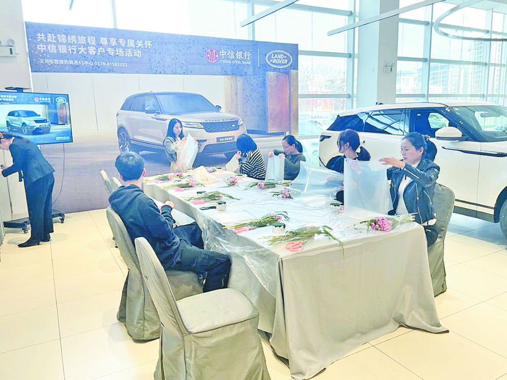 日前,中信銀行義烏分行車(chē)貸團(tuán)隊(duì)聯(lián)合義烏東昌捷豹路虎4S店,開(kāi)展“中信銀行大客戶(hù)回饋暨‘三八’婦女節(jié)主題活動(dòng)”。 當(dāng)天該行車(chē)貸團(tuán)隊(duì)聯(lián)合義烏東昌捷豹路虎4S店,共同邀約了8組中高端客戶(hù)到場(chǎng),開(kāi)展了包括客戶(hù)試乘試駕、新車(chē)鑒賞、插花等活動(dòng)。之后由該行渠道經(jīng)理詳細(xì)介紹了車(chē)貸的一些相關(guān)特色產(chǎn)品,同時(shí)經(jīng)銷(xiāo)商代表也講述了有關(guān)車(chē)輛保養(yǎng)知識(shí)和日常行車(chē)技巧等。 參與本次活動(dòng)的客戶(hù)都獲得了該行贈(zèng)送的精美禮品,現(xiàn)場(chǎng)定車(chē)還可以享受4S店額外購(gòu)車(chē)優(yōu)惠;顒(dòng)中間還穿插了插花及一些游戲互動(dòng)環(huán)節(jié),現(xiàn)場(chǎng)氣氛活躍,受到了客戶(hù)們的一致好評(píng)。 此次活動(dòng)的開(kāi)展大大加深了渠道合作關(guān)系,還收獲了客戶(hù)對(duì)中信銀行服務(wù)的認(rèn)可。中信銀行義烏分行車(chē)貸團(tuán)隊(duì)將繼續(xù)開(kāi)展各類(lèi)品牌活動(dòng),維護(hù)好經(jīng)銷(xiāo)商合作關(guān)系,為用戶(hù)提供更優(yōu)質(zhì)的服務(wù)。 |