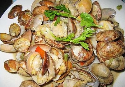 1、新鮮蛤蜊用淡鹽水浸泡20分鐘,使其吐盡泥沙備用。鍋中加入清水蔥段、2片姜一起燒開,放入蛤蜊焯燙至開口,然后撈出瀝干水分;