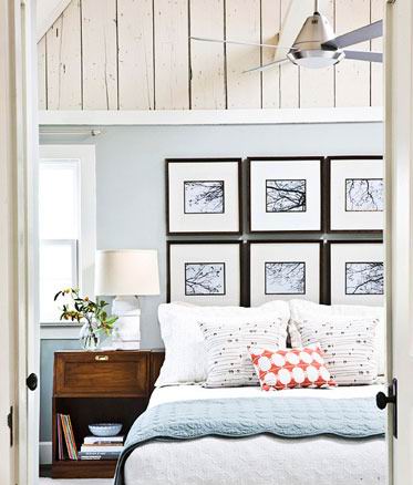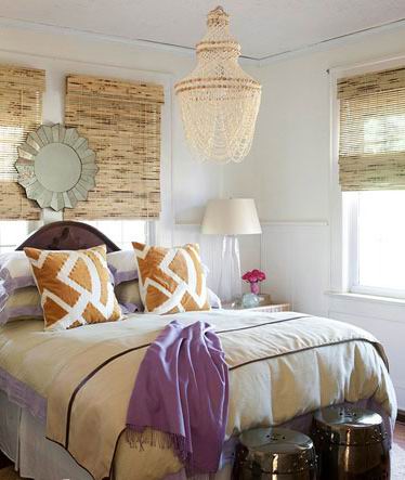 臥室以一片純凈的白色作為空間基調(diào),睡床上或大面積的黃色被單,或小范圍的紫色披毯點(diǎn)綴,兩種清淺色調(diào)的適度對(duì)比運(yùn)用讓整個(gè)臥室顯得浪漫而旖旎。若是夏天看著這樣的臥室沉沉睡去,定能為你編織一個(gè)如夢(mèng)如幻的意境。 清爽的藍(lán)白色臥室里,多線形的圖案與浪漫元素的相互結(jié)合,營(yíng)造出舒適的空間氛圍。出彩的床品設(shè)計(jì)搭配獨(dú)特的色彩,打造出驚艷效果。 |
