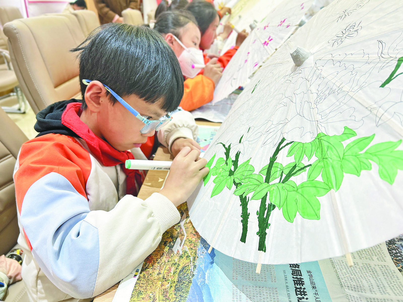 4月4日,福田街道振興社區(qū)開展“國韻初識之清明·油紙傘手作”活動,以此寄托對故去親人的思念;顒又,志愿者老師向大家講述油紙傘歷史、制作工藝,并鼓勵學生將清明時節(jié)的景象繪制在油紙傘上。青團、風箏、柳樹……不一會兒,一件件代表清明元素的作品躍然傘上。
