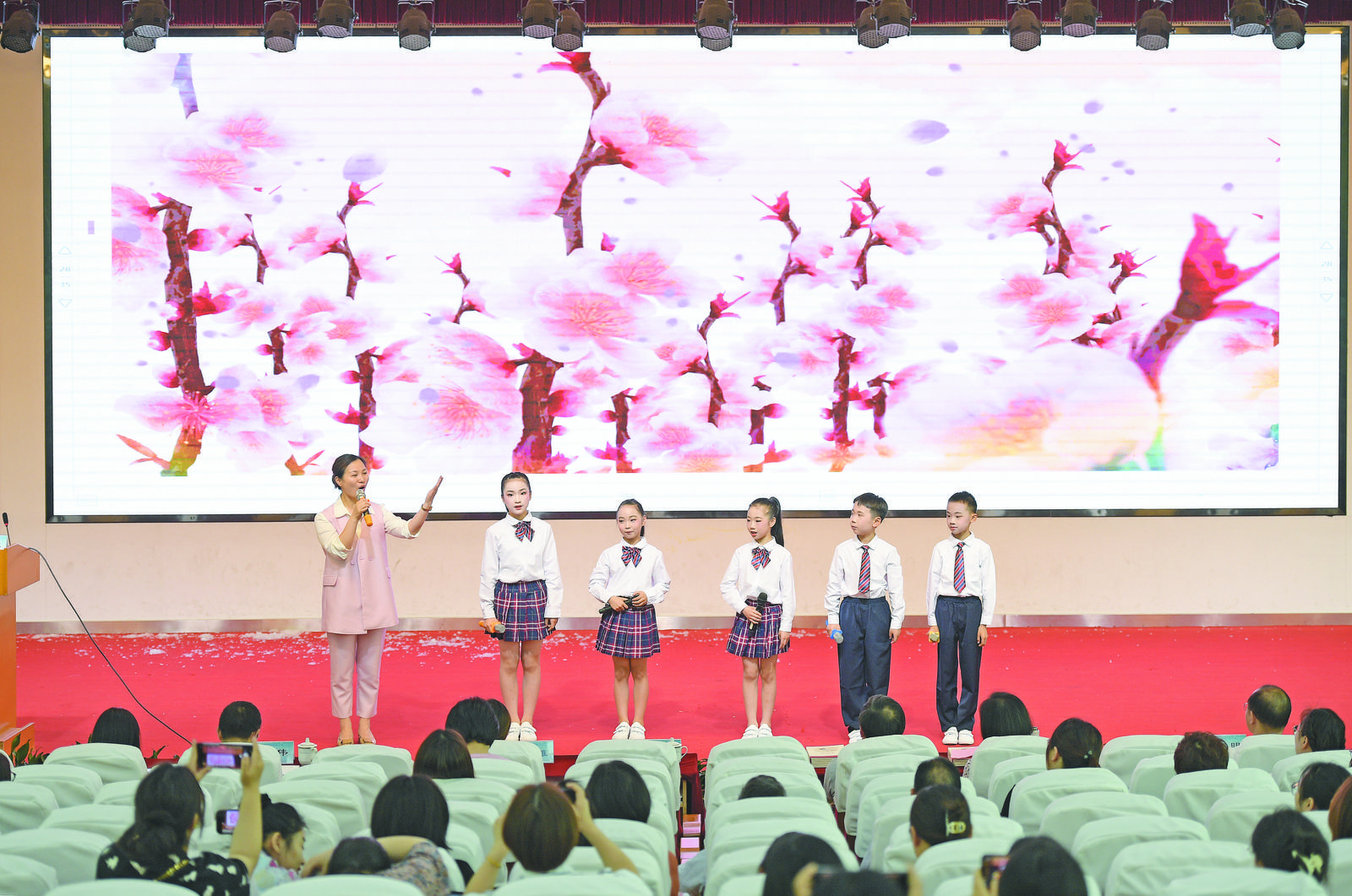 日漸長,綠正好,春來正逢讀書時。4月18日,2023年義烏市“愛·尚閱讀”現(xiàn)場會暨實驗小學“經(jīng)典20年”展示活動在實驗小學報告廳舉行。本次活動由義烏市教育局、義烏市教育研修院主辦,義烏市實驗小學承辦。市教育局、市教育研修院相關領導及全市中小學語文骨干教師共400余人參加了本次活動。 從2001年起,實驗小學就開展了經(jīng)典誦讀實踐研究,旨在培養(yǎng)學生的閱讀興趣,幫助學生養(yǎng)成良好的閱讀習慣。經(jīng)過多年的探索實踐,學校讀書活動精彩紛呈,學生經(jīng)典積累扎實有效,書香校園建設的一些典型做法逐漸輻射全市,得到了社會各界的認可。 |