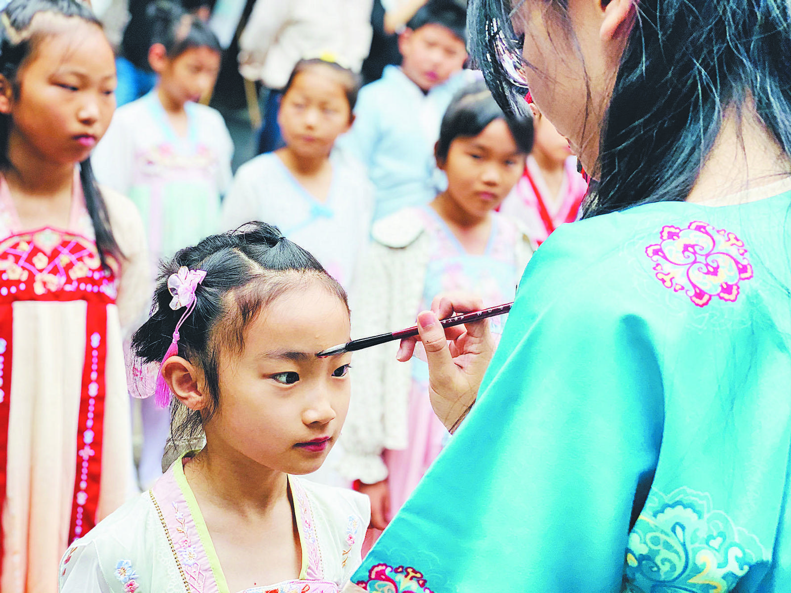 綠粽飄香時(shí),又是一年端午節(jié)。為了讓孩子們了解和感受中華傳統(tǒng)節(jié)日文化,豐富居民精神文化生活,6月17日,江東街道盤溪社區(qū)黨委在宗澤祠堂小廣場(chǎng)舉辦端午主題游園活動(dòng),來自轄區(qū)的50余名小朋友與家長(zhǎng)一起,學(xué)知識(shí),點(diǎn)雄黃、做香囊、編五彩繩、包粽子,在聆聽、體驗(yàn)、互動(dòng)的過程中感受傳統(tǒng)文化底蘊(yùn),用這樣“特殊”的形式將愛國(guó)之情浸潤(rùn)在每個(gè)孩子心中。 “點(diǎn)上雄黃,祝福小朋友們健康成長(zhǎng)!碑(dāng)天上午,在盤溪社區(qū)“情滿端午 ‘粽’享歡樂”端午主題游園活動(dòng)上,老師用雄黃在一個(gè)個(gè)小朋友的額頭寫上“王”字。 “小朋友們知道嗎?端午節(jié)的習(xí)俗不僅有包粽子,還有點(diǎn)雄黃、系彩繩、射五毒……”早上8點(diǎn),孩子們身著漢服,在老師的生動(dòng)講解下,了解了端午節(jié)淵源和由來。講解過后,老師為孩子們一一灑艾汁、點(diǎn)雄黃。接下來,孩子們?cè)诶蠋煹闹笇?dǎo)下,或編五彩繩,或做香囊。不一會(huì)兒,一個(gè)個(gè)精致、五顏六色的手繩、香囊制作完成。家長(zhǎng)們將五彩繩系在孩子手臂上,有祈福納吉、保佑健康平安的美好寓意。繪制彩蛋也是當(dāng)天的“重頭戲”,經(jīng)過一段時(shí)間的構(gòu)思和創(chuàng)作,孩子們手中的彩蛋成型了,看起來可愛至極。 “射五毒”環(huán)節(jié)也很受孩子們歡迎。射中畫板上的“五毒”昆蟲,寓意著接下來將避開蛇蟲,百毒不侵。每當(dāng)有人射中,就會(huì)響起一陣歡呼聲,吸引許多居民駐足觀看!岸宋绻(jié)是我們的傳統(tǒng)文化節(jié)日,能帶孩子來體驗(yàn)一下傳統(tǒng)文化,很有趣,也很有意義!爆F(xiàn)場(chǎng),傅一辰小朋友的家長(zhǎng)說。 “左右!左右!左右……”當(dāng)天下午,社區(qū)還組織轄區(qū)100余名黨員,開展了“旱地龍舟賽”。比賽中,大家分工協(xié)作,在趣味賽現(xiàn)場(chǎng)形成一道亮麗的風(fēng)景。“感覺心里暖暖的,更有歸屬感了!辟惡螅瑏碜院幽系牧鲃(dòng)黨員周曉源說。 “我們希望通過這個(gè)活動(dòng),讓更多人尤其是孩子們了解優(yōu)秀的中華傳統(tǒng)文化,喚醒大家對(duì)傳統(tǒng)文化的熱愛。今后我們會(huì)繼續(xù)舉辦這樣的活動(dòng),更好地傳承和展示傳統(tǒng)文化的魅力!北P溪社區(qū)黨委書記劉躍進(jìn)說。 |