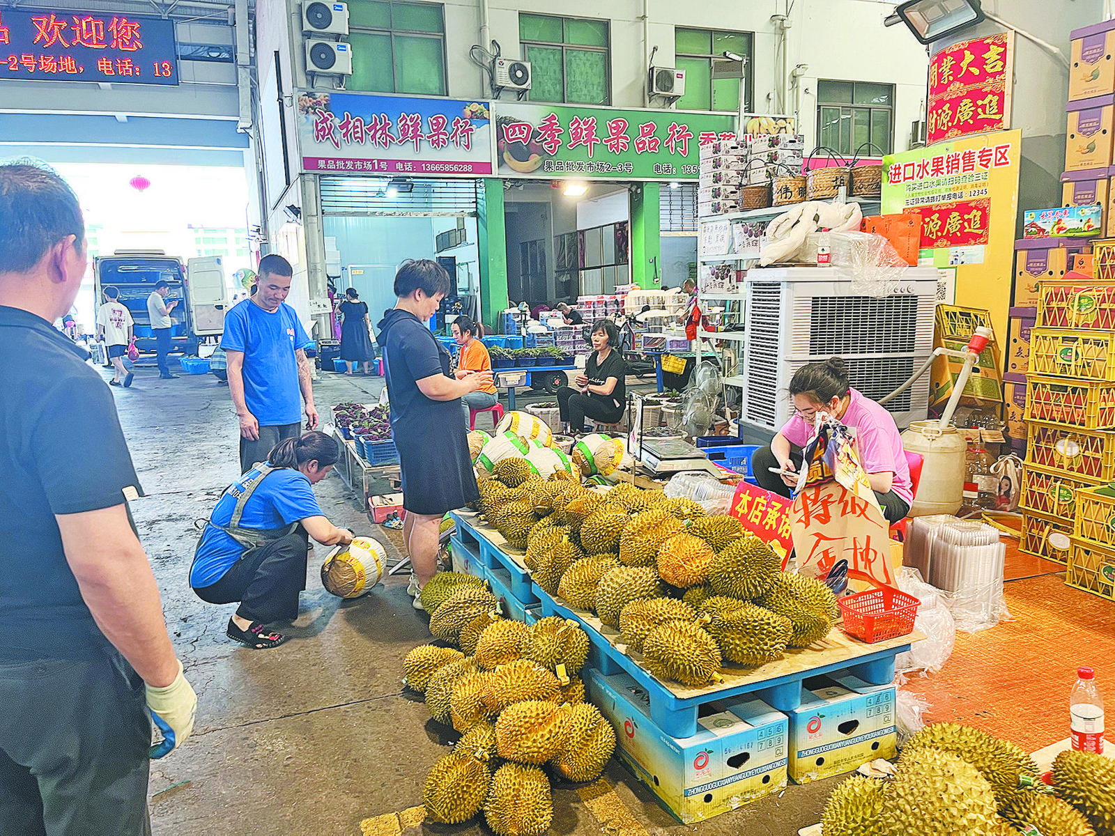 眼下正是榴蓮的市場(chǎng)旺季,榴蓮好吃,但挑榴蓮卻如拆“盲盒”,除了微不足道的技術(shù)加成外,剩下的全憑運(yùn)氣,因?yàn)樵谕绞謩冮_(kāi)它之前,很少有人知道里面長(zhǎng)啥樣。 開(kāi)“盲盒”的結(jié)局自然是有人歡喜有人愁。有的打開(kāi)來(lái),皮薄肉厚,每一房果肉都金黃飽滿,口感綿軟細(xì)膩,而有的則相反,看著是個(gè)好榴蓮,打開(kāi)卻是“一場(chǎng)詐騙”,沒(méi)啥榴蓮果肉。于是,“開(kāi)榴蓮盲盒”成為一場(chǎng)狂歡開(kāi)始在各大社交平臺(tái)上蔓延。甚至有網(wǎng)友稱,“買榴蓮最開(kāi)心的不是吃榴蓮,而是開(kāi)榴蓮”。可以說(shuō),今年的“榴蓮熱”,很大程度上是從社交平臺(tái)上的“榴蓮盲盒”視頻帶起來(lái)的。點(diǎn)開(kāi)抖音,你會(huì)發(fā)現(xiàn)話題“徒手剝榴蓮的驚喜”播放量已經(jīng)達(dá)到7.8億,話題“又到了開(kāi)榴蓮盲盒的季節(jié)”播放量達(dá)到7.4億。小紅書和“榴蓮盲盒”有關(guān)的筆記已超過(guò)28萬(wàn)篇。 榴蓮消費(fèi)究竟有多火,從海關(guān)披露的數(shù)據(jù)也可窺見(jiàn)一斑。據(jù)中國(guó)海關(guān)總署數(shù)據(jù),今年第一季度,全國(guó)進(jìn)口鮮榴蓮9.1萬(wàn)噸,是近五年同期進(jìn)口量最高的一年。 6月19日,記者在果品批發(fā)市場(chǎng)看到,不少攤位都將榴蓮擺放在顯眼位置。經(jīng)營(yíng)戶余勇說(shuō),目前市面上售賣的榴蓮主要有金枕、干堯、貓山王等品種,主要來(lái)自泰國(guó)、越南、馬來(lái)西亞等地!敖衲炅裆彽膬r(jià)格比往年偏高,一箱32斤的榴蓮,批發(fā)價(jià)在680~750元。然而半個(gè)月前,一箱榴蓮的價(jià)格甚至達(dá)到了1300元,是近幾年從沒(méi)出現(xiàn)過(guò)的。” 即便榴蓮價(jià)格偏高,榴蓮的銷量依然可觀。經(jīng)營(yíng)戶汪燕說(shuō),現(xiàn)在吃榴蓮的人越來(lái)越多,今年三到五月是榴蓮第一波消費(fèi)旺季,平均每天能賣六七百箱!艾F(xiàn)在有不少水果店會(huì)用榴蓮引流,只要在店內(nèi)消費(fèi)或充值滿一定金額,就可以買到9.9元甚至是5.8元一斤的榴蓮!庇嘤卵a(bǔ)充說(shuō)。 對(duì)于網(wǎng)上爆火的“榴蓮盲盒”相關(guān)話題,余勇自然也有所耳聞!澳昧裆彯(dāng)盲盒玩,應(yīng)該是今年最火的消費(fèi)娛樂(lè)方式之一。我們可以提供開(kāi)榴蓮服務(wù),但是我遇到不少顧客都要整顆帶回去,估計(jì)是想體驗(yàn)一把開(kāi)盲盒的樂(lè)趣! 記者了解到,在今年以前,市面上銷售的榴蓮都來(lái)自國(guó)外,而從這個(gè)月開(kāi)始,首批海南榴蓮即將上市銷售。按照以往的經(jīng)驗(yàn),價(jià)格昂貴的水果一旦國(guó)產(chǎn)化,就意味著價(jià)格的大幅度降低,比如去年夏天的陽(yáng)光玫瑰堪稱賣到“白菜價(jià)”。不過(guò)也有經(jīng)營(yíng)戶表示,由于今年國(guó)產(chǎn)榴蓮剛上市,產(chǎn)量不高,榴蓮在一定時(shí)期內(nèi)依然會(huì)保持較高價(jià)位,實(shí)現(xiàn)“榴蓮自由”還有待時(shí)日。 |