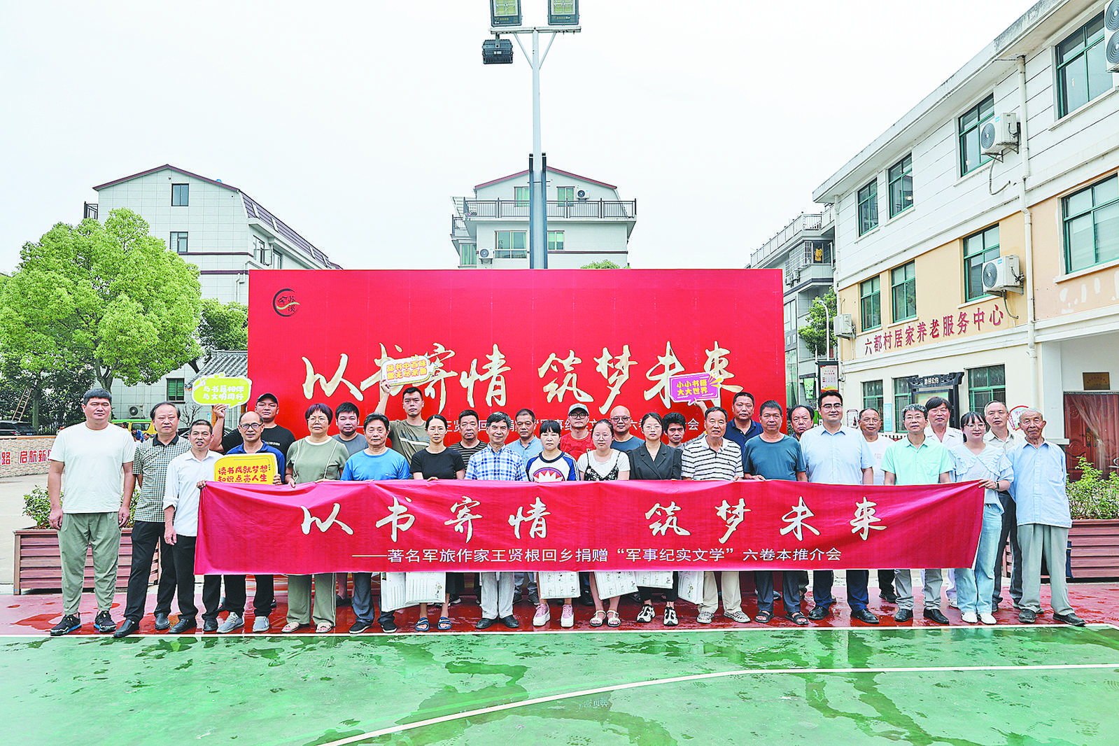 正是盛夏好時(shí)節(jié),6月20日上午,蘇溪鎮(zhèn)六都村新時(shí)代文明實(shí)踐站里人頭攢動(dòng),三樓的農(nóng)家書屋更是熱鬧非凡,駱金寶、樓森、胡友大等不少本土文學(xué)大咖都在其中。 原來(lái),當(dāng)天上午,原總參謀部大校、中國(guó)作家協(xié)會(huì)會(huì)員、中國(guó)報(bào)告文學(xué)學(xué)會(huì)理事、中國(guó)散文學(xué)會(huì)理事、著名義烏籍軍旅作家王賢根回故里探親,并攜作品“王賢根軍事紀(jì)實(shí)文學(xué)”六卷本在蘇溪鎮(zhèn)六都村與家鄉(xiāng)文友見面交流,同時(shí)向蘇溪鎮(zhèn)各村社的新時(shí)代文明實(shí)踐站捐贈(zèng)300套新書。 “故鄉(xiāng)是我文學(xué)創(chuàng)作的根脈” 上午9時(shí)許,充滿書香的農(nóng)家書屋已坐滿了從四處趕來(lái)的文學(xué)愛好者,靜待王賢根帶來(lái)的“軍事紀(jì)實(shí)文學(xué)”六卷本推介講座。一個(gè)多小時(shí)的推介會(huì),王賢根的話題始終未離開過(guò)故鄉(xiāng)。 王賢根1949年出生在蘇溪巧溪村,1958年建水庫(kù)時(shí)全家遷至溪北村。1961年進(jìn)入蘇溪中學(xué)就讀,后考入金華一中。結(jié)合自己的求學(xué)成長(zhǎng)經(jīng)歷,王賢根深情地回顧了兒時(shí)在家鄉(xiāng)的生活:“我們這邊的小孩,沒上學(xué)前就開始練習(xí)毛筆字,最早在地上用小木棒寫寫畫畫!钡靡嬗诩亦l(xiāng)文化的熏陶,一顆自信的種子在王賢根心中開始萌芽。上了中學(xué),愛好寫作的王賢根更是受到了語(yǔ)文老師的偏愛,常常將他的作文貼上墻給其他同學(xué)學(xué)習(xí)。讀初二那年,語(yǔ)文老師出題《我的理想》,當(dāng)其他同學(xué)都奮筆疾書的時(shí)候,王賢根的思緒飄向了遠(yuǎn)方,老師踱步到他身旁時(shí),他向老師透露了自己的夢(mèng)想:當(dāng)一名作家。或許就在那一刻,為王賢根奠定了人生的發(fā)展方向。 1968年初,他從金華一中應(yīng)征入伍,歷任戰(zhàn)士、文書、班長(zhǎng)、排長(zhǎng)、干事、指導(dǎo)員、秘書、政治協(xié)理員等職,一干就是四十年。他認(rèn)為,是故鄉(xiāng)的熱土培養(yǎng)自己成長(zhǎng),小學(xué)、初中的刻苦讀書,為融入部隊(duì)大熔爐打下了堅(jiān)實(shí)的基礎(chǔ),他因此也多了一份對(duì)故土母校的感恩之情。 用文字色彩渲染家國(guó)情懷 “家國(guó)情懷,始終是軍事紀(jì)實(shí)文學(xué)的主線!绷钠鹋c軍事紀(jì)實(shí)文學(xué)結(jié)緣的過(guò)程時(shí),王賢根以歷史和時(shí)代的目光審視故鄉(xiāng)及故鄉(xiāng)的文學(xué)。 本次他的六卷本作品《浩然家國(guó)情》《開國(guó)將領(lǐng)的故事》《雷神》《西線之戰(zhàn)》《援越抗美實(shí)錄》《鐵流先鋒》,不少是故鄉(xiāng)的題材。如上海人民出版社出版的《義烏軍事文化略述》,是列入義烏叢書面世的,初稿書名即為《浩然家國(guó)情》,幾易其稿,現(xiàn)以第三稿的面目面對(duì)讀者,內(nèi)容比《義烏軍事文化略述》多了兩章。臥薪嘗膽、終成霸業(yè)的勾踐,汴梁設(shè)擂、拳振國(guó)威的金臺(tái),加上為孫權(quán)鼎立東吳立下赫赫戰(zhàn)功的駱統(tǒng),揮筆書寫討武檄文、震撼朝野的駱賓王,“杯酒釋兵權(quán)”、南下隱居義烏的王彥超,垂死尚三呼的民族英雄宗澤,進(jìn)士出身、抗倭平寇的儒將吳百朋……一個(gè)個(gè)鮮活的人物,一支支威武的隊(duì)伍,演繹了義烏志士仁人、英雄豪杰們跌宕起伏的人生,無(wú)不顯現(xiàn)了義烏軍事文化的生動(dòng)和輝煌。 王賢根說(shuō),像對(duì)太平軍的評(píng)述,是以家鄉(xiāng)當(dāng)年百姓的目光和現(xiàn)還在流傳的故事,及鄉(xiāng)民的口吻為依據(jù),來(lái)審視他們的。 王賢根多次提及與人合作30余萬(wàn)字長(zhǎng)篇報(bào)告文學(xué)《千古長(zhǎng)城義烏兵》的創(chuàng)作,認(rèn)為“單單寫故鄉(xiāng)美好景物與風(fēng)土人情,是沒法讓一位作家真正深刻起來(lái)的”。他在《浩然家國(guó)情》后記“十年一覺故鄉(xiāng)夢(mèng)”里說(shuō)道,有心收集義烏軍事文化相關(guān)的史料和故事,即使不為這寫作,對(duì)于故鄉(xiāng)的深入了解和理解,與自己這個(gè)從戎一生的軍人,是感情的一種紐帶,也是從事軍事文學(xué)創(chuàng)作的一份養(yǎng)料。 文學(xué)是一輩子的事 文章合為時(shí)而著,歌詩(shī)合為事而作。文學(xué)情緣不外乎耕植于心的家國(guó)情懷,源于文以載道的責(zé)任擔(dān)當(dāng),還來(lái)自心靈深處執(zhí)著的夢(mèng)想。 在四十年的軍旅生涯中,王賢根筆耕不輟,他所著的報(bào)告(紀(jì)實(shí))文學(xué)《援越抗美實(shí)錄》《中國(guó)秘密大發(fā)兵》《雷神》《西線之戰(zhàn)》《鄧東哲將軍紀(jì)事》《火紅的陽(yáng)光》《鄱陽(yáng)湖情懷》《遠(yuǎn)泉綠色之夢(mèng)》《千古長(zhǎng)城義烏兵》,散文集《山野漫筆》《用自己的頭站起來(lái)》《又是煙雨迷蒙時(shí)》等,曾獲多項(xiàng)文學(xué)獎(jiǎng)。 在《夢(mèng)想是一輩子的事——王賢根訪談與演講集》一書中,王賢根談到了故鄉(xiāng)、地域文化和賢達(dá)人物對(duì)一個(gè)作家的刻骨銘心的影響,譬如《青山不老》中的鄉(xiāng)情和老師;譬如在解放軍藝術(shù)學(xué)院文學(xué)系深造期間遇見的系主任王愿堅(jiān)(《黨費(fèi)》《普通勞動(dòng)者》的作者)