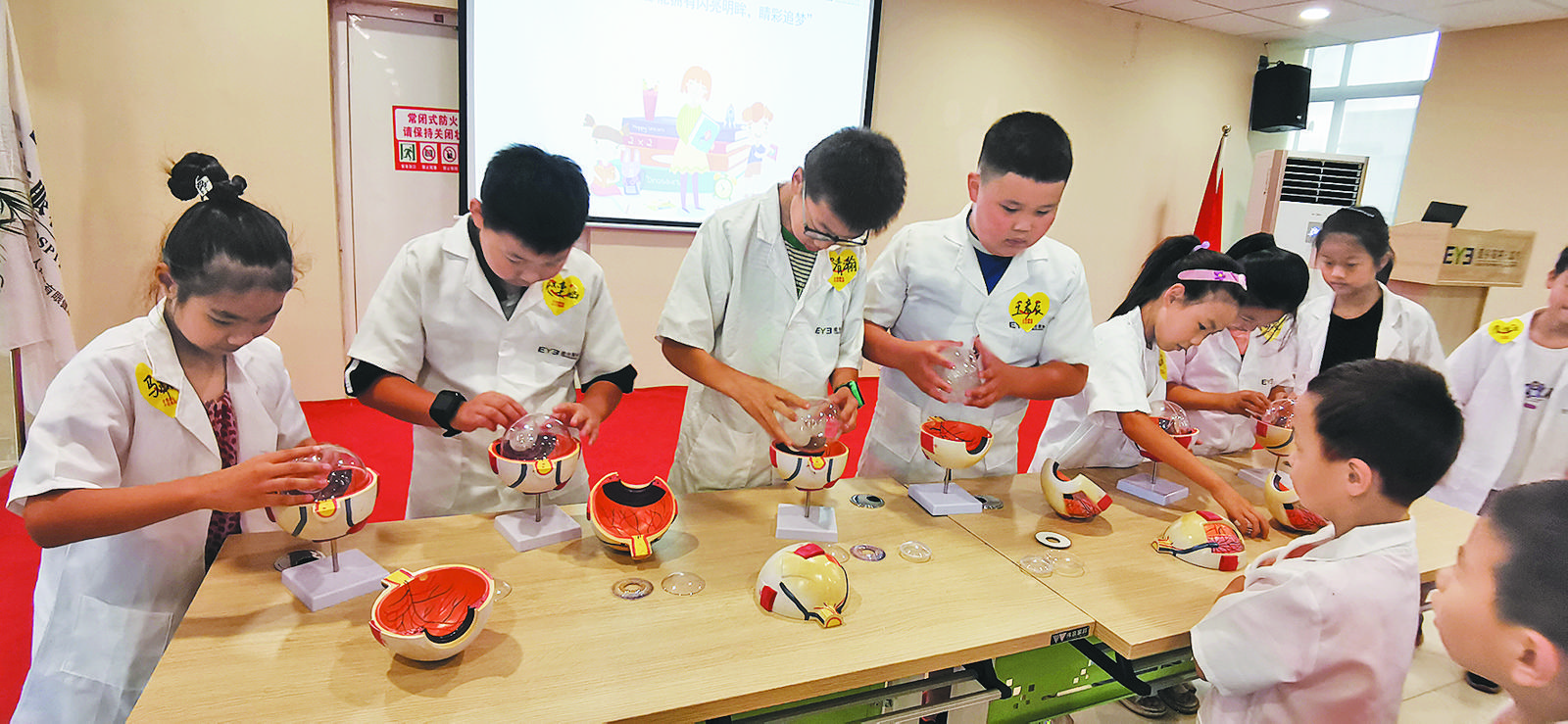 6月18日下午,十余名來自徐江小學(xué)的同學(xué)與商報(bào)小記者一起,走進(jìn)義烏市近視防控科普教育基地——義烏愛爾眼科醫(yī)院,開展“小小眼科醫(yī)生”科普研學(xué)活動(dòng)。同學(xué)們化身“小小眼科醫(yī)生”,在專業(yè)醫(yī)生的帶領(lǐng)下,學(xué)習(xí)近視防控知識(shí),接受愛眼護(hù)眼用眼知識(shí)的科普教育。 在當(dāng)天的“小小眼科醫(yī)生”體驗(yàn)活動(dòng)中,愛爾眼科醫(yī)院工作人員給每一位同學(xué)都進(jìn)行了專業(yè)的視力檢測,并建立了眼健康檔案。在眼健康知識(shí)科普環(huán)節(jié),愛爾眼科的專業(yè)醫(yī)生給同學(xué)們上了一堂青少年近視防控的科普講座,讓同學(xué)們明白了眼睛的構(gòu)造,以及哪一些是好的用眼習(xí)慣,哪一些是不好的用眼習(xí)慣,如何預(yù)防近視等知識(shí)。在隨后的互動(dòng)問答環(huán)節(jié),同學(xué)們積極舉手回答關(guān)于眼健康的知識(shí)問答。在一問一答中,同學(xué)們將眼健康的科學(xué)知識(shí)深深地印在了心底。答對(duì)問題的同學(xué),還獲得了不少小獎(jiǎng)品,別提多開心。 在隨后的游戲體驗(yàn)環(huán)節(jié),醫(yī)生手把手教授同學(xué)們?nèi)绾问褂冕t(yī)學(xué)器材驗(yàn)光,并親自為自己的爸爸媽媽做眼部檢查,通過角色扮演的形式讓同學(xué)們真實(shí)零距離地接觸了眼科醫(yī)學(xué),更懂得了保護(hù)眼睛的重要性;顒(dòng)結(jié)束,愛爾眼科醫(yī)院還專門給每一位同學(xué)頒發(fā)了一份“愛眼小醫(yī)生”證書,以資鼓勵(lì)。 |