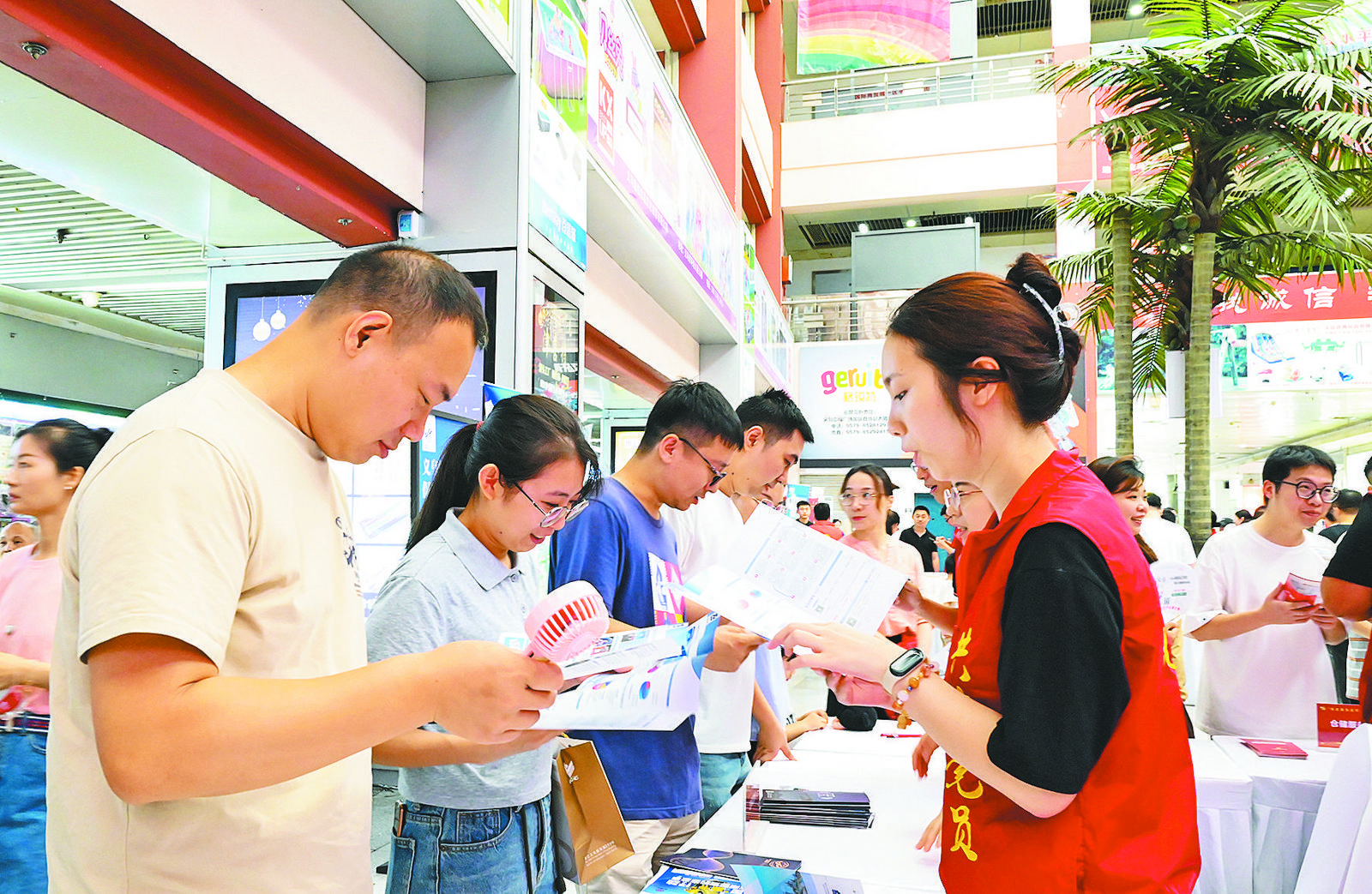 7月1日,“組團(tuán)服務(wù)進(jìn)市場(chǎng)”來(lái)到國(guó)際商貿(mào)城一區(qū),活動(dòng)吸引包括市場(chǎng)服務(wù)共同體成員單位在內(nèi)的40個(gè)基層黨組織,利用各自領(lǐng)域特征、業(yè)務(wù)特色、服務(wù)特長(zhǎng),推出全球好物市集、健康義診、展會(huì)宣傳、外幣鑒別、知識(shí)產(chǎn)權(quán)業(yè)務(wù)咨詢、稅法普及、反詐騙宣傳等36個(gè)“微項(xiàng)目”。500多名黨員齊聚現(xiàn)場(chǎng),給市民送政策、送服務(wù)、送實(shí)惠。 |