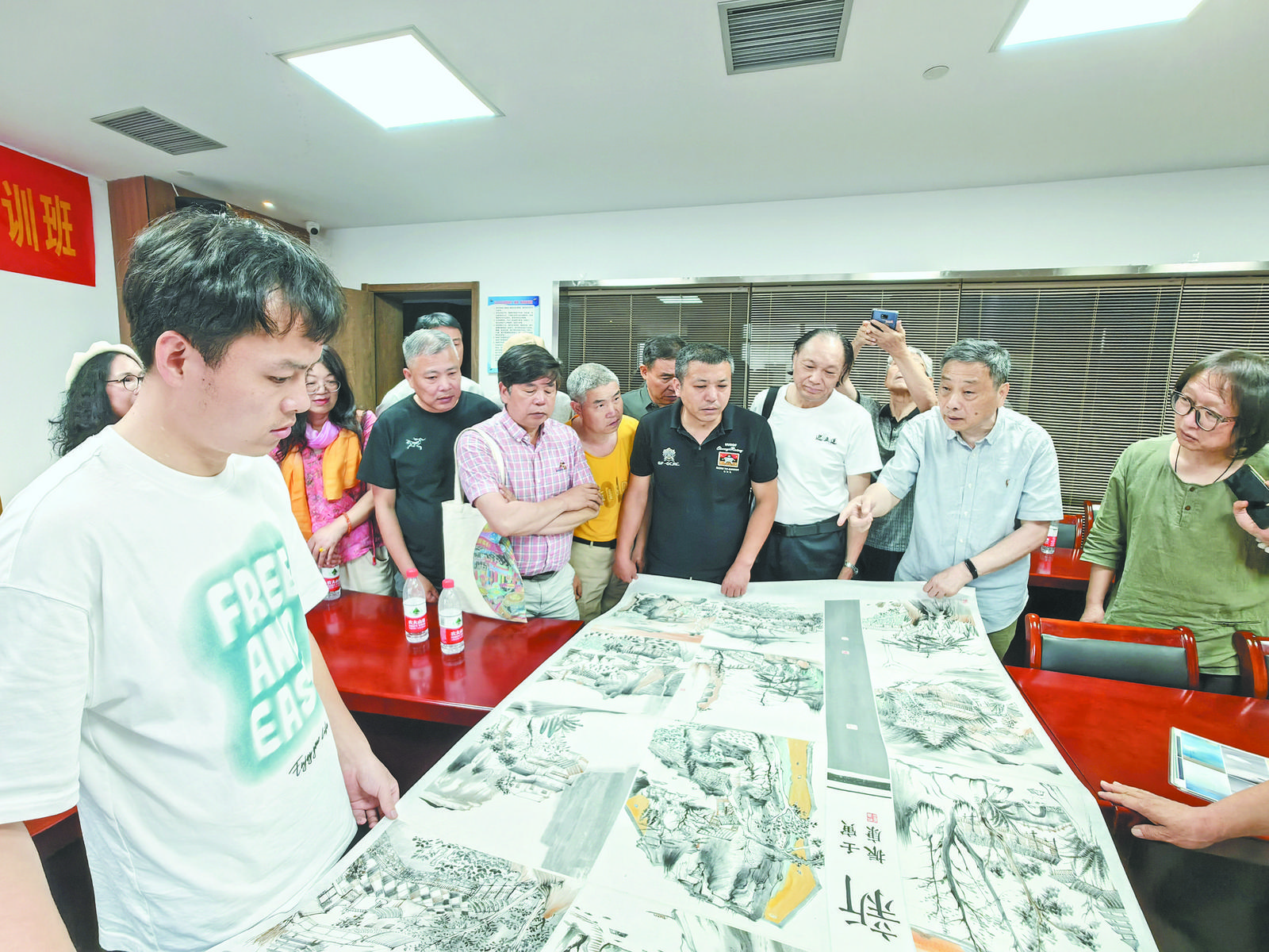 為進一步提高我市畫家業(yè)務(wù)水平,全力備戰(zhàn)大展,日前,第十四屆全國美展創(chuàng)作動員大會在市文化館舉行。國畫名家、省美協(xié)顧問、省人物畫研究會會長池沙鴻到場指導(dǎo)創(chuàng)作,市美協(xié)骨干會員近50人參加活動并聽取創(chuàng)作講座。 據(jù)悉,全國美術(shù)作品展覽是目前我國最具影響力、權(quán)威性的國家級綜合性美術(shù)大展,每5年舉辦一次,代表國家美術(shù)創(chuàng)作的最高水平,迄今已舉辦13屆;顒蝇F(xiàn)場,池沙鴻高度評價了義烏美術(shù)界的成績,鼓勵廣大美術(shù)愛好者積極參展參賽,深入基層開展創(chuàng)作,出佳作、出精品。他深入淺出地解讀了歷屆美展獲獎作品的特點,對我市美協(xié)會員作品一一進行創(chuàng)作指導(dǎo),給予了寶貴意見,受到在場美術(shù)愛好者們的認可和歡迎。 |