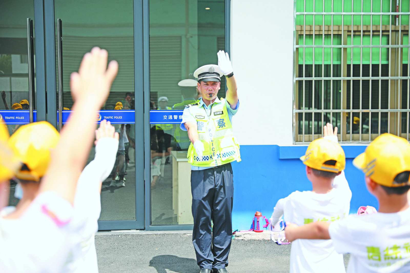 7月4日上午,在市公安局交警大隊北苑中隊,一群參加社區(qū)暑期夏令營活動的小朋友正在交警帶領(lǐng)下參觀學(xué)習(xí)。交警結(jié)合現(xiàn)場感知、實驗?zāi)M、視頻教學(xué)、學(xué)習(xí)指揮手勢等交通知識開展教學(xué),進(jìn)一步提高兒童安全出行意識,讓他們過一個快樂平安的暑假。