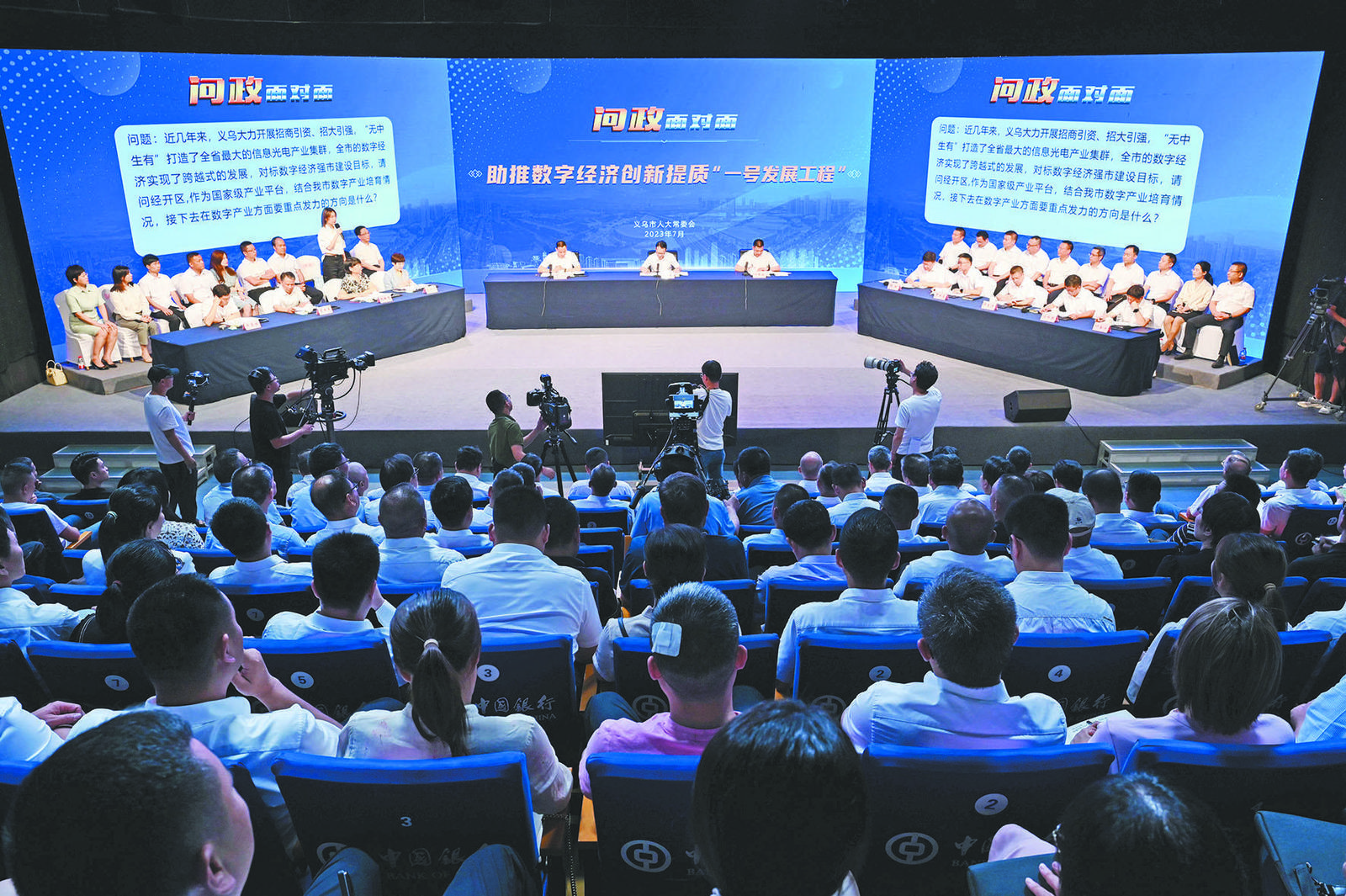 7月5日下午,為認(rèn)真貫徹省委三個“一號工程”的決策部署,根據(jù)市委關(guān)于加快數(shù)字經(jīng)濟(jì)發(fā)展的一系列要求,按照2023年人大重點(diǎn)監(jiān)督安排,市人大常委會圍繞“數(shù)字經(jīng)濟(jì)創(chuàng)新提質(zhì)‘一號發(fā)展工程 ’”這一主題,組織開展“問政面對面”活動。 市委書記王健出席并講話。市長葉幫銳參加活動并講話。市人大常委會主任丁政主持。 會上,部分市人大代表與經(jīng)開區(qū)管委會、經(jīng)信局、商城集團(tuán)等部門、單位負(fù)責(zé)人面對面“問政”,聚焦助推數(shù)字經(jīng)濟(jì)創(chuàng)新提質(zhì),查找問題、分析原因、理清思路、謀劃實(shí)招,推動全市上下加快數(shù)字經(jīng)濟(jì)下的理念思維、話語體系、治理手段等全方位變革,落實(shí)落細(xì)責(zé)任,強(qiáng)化協(xié)同配合,助力數(shù)字經(jīng)濟(jì)創(chuàng)新提質(zhì)“一號發(fā)展工程”加速向前。 提問代表:駱立波(義烏市易開蓋實(shí)業(yè)公司董事長兼總經(jīng)理) 【整體情況】年初“新春第一會”上提出,要以更大力度實(shí)施數(shù)字經(jīng)濟(jì)創(chuàng)新提質(zhì)“一號發(fā)展工程”,省委和義烏市委也都相繼出臺了實(shí)施方案。請問市政府,義烏市數(shù)字經(jīng)濟(jì)創(chuàng)新提質(zhì)“一號發(fā)展工程”目前推進(jìn)情況如何?下一步有何具體舉措繼續(xù)高質(zhì)量落實(shí)好這項(xiàng)工作? 市委常委、副市長楊獻(xiàn)答:近年來,我市數(shù)字經(jīng)濟(jì)工作成效顯著,2022年義烏被列入全省數(shù)字經(jīng)濟(jì)成效明顯縣(市、區(qū))激勵名單。今年“新春第一會”后,市委、市政府高度重視,在金華縣市中首個出臺了《義烏市數(shù)字經(jīng)濟(jì)創(chuàng)新提質(zhì)“一號發(fā)展工程”實(shí)施方案》,圍繞“打造世界小商品之都、建成數(shù)字經(jīng)濟(jì)強(qiáng)市”總體目標(biāo),突出數(shù)字貿(mào)易、數(shù)字產(chǎn)業(yè)、數(shù)字強(qiáng)基三大主賽道;結(jié)合義烏的發(fā)展現(xiàn)狀,突出義烏的元素,提高義烏的辨識度,提出三項(xiàng)主要任務(wù):一是建成全球貿(mào)易樞紐,二是打造全國智能光伏產(chǎn)業(yè)樞紐,三是構(gòu)建通達(dá)全球的商貿(mào)服務(wù)型國家物流樞紐。組建了義烏市數(shù)字經(jīng)濟(jì)創(chuàng)新提質(zhì)“一號發(fā)展工程”專班,下設(shè)9個工作組,各責(zé)任部門各司其職,協(xié)同推進(jìn)數(shù)字經(jīng)濟(jì)創(chuàng)新提質(zhì)“一號發(fā)展工程”相關(guān)工作,目前已取得了階段性進(jìn)展: 1.在重點(diǎn)指標(biāo)進(jìn)度方面。1—5月,全市數(shù)字經(jīng)濟(jì)核心產(chǎn)業(yè)制造業(yè)增加值40.6億元,同比增長10.5%;5家光伏企業(yè)產(chǎn)值均超過45億元;全市實(shí)現(xiàn)網(wǎng)絡(luò)零售額819.18億元,同比增長12%。5家數(shù)字經(jīng)濟(jì)領(lǐng)域企業(yè)向上申報(bào)國家高新技術(shù)企業(yè)。 2.在三大樞紐推進(jìn)方面。圍繞建成全球貿(mào)易樞紐的任務(wù),截至6月底,Chinagoods平臺新增注冊采購商30.5萬人、累計(jì)360.5萬人,在線服務(wù)貿(mào)易額超320億元,同比增長110.8%;小商品城日均客流超20萬人次,全市常駐外商突破1.6萬人,均恢復(fù)至疫情前水平。圍繞打造全國智能光伏產(chǎn)業(yè)樞紐的任務(wù),6家頭部企業(yè)落地義烏,目前電池片和組件的產(chǎn)能均已達(dá)35GW,全部建成后,光伏電池和組件的產(chǎn)能規(guī)模將分別達(dá)到83GW和100GW,約占全國總量的20%;今年2月,我市智能光伏產(chǎn)業(yè)入選首批省415X先進(jìn)制造業(yè)集群核心區(qū)。圍繞構(gòu)建通達(dá)全球的商貿(mào)服務(wù)型國家物流樞紐的任務(wù),1—5月,航空貨運(yùn)量9988.3噸,同比增長67.3%;公路貨運(yùn)量3420萬噸,同比增長26.4%;快遞業(yè)務(wù)38億件,同比增長13.1%。1—6月,“義新歐”班列開行921列,發(fā)運(yùn)7.6萬標(biāo)箱,同比增長14.3%;義甬舟海鐵聯(lián)運(yùn)貨運(yùn)量4.257萬標(biāo)箱,增長5.89%。 3.在“平臺+個十百千”數(shù)字化改造工程方面。目前有30個智能工廠(數(shù)字化車間)項(xiàng)目正在推進(jìn)中,有14個智能工廠(數(shù)字化車間)項(xiàng)目完成建設(shè),其中威特電梯、英倫汽車、晶澳科技、棒杰股份、天合光能等5個入選省級數(shù)字化車間,夢娜襪業(yè)入選省未來工廠。針織服裝行業(yè)5家樣本企業(yè)“N+X”輕量化改造工作有序推進(jìn)中,已完成68家小微企業(yè)“1+X”基礎(chǔ)化改造,并實(shí)現(xiàn)數(shù)據(jù)與平臺互通。 下一步,我們將繼續(xù)把數(shù)字經(jīng)濟(jì)創(chuàng)新提質(zhì)“一號發(fā)展工程”作為深入實(shí)施“八八戰(zhàn)略”的使命所系,作為當(dāng)前和今后一個時期的頭等大事,以“第一”的工作力度,敢沖敢拼爭先、提速提效落實(shí)。 一是加快培育數(shù)字產(chǎn)業(yè)。深耕“4+X”產(chǎn)業(yè),持續(xù)強(qiáng)鏈補(bǔ)鏈延鏈,開辟數(shù)字產(chǎn)業(yè)新賽道,做大做強(qiáng)數(shù)字產(chǎn)業(yè)。一方面持續(xù)招大引強(qiáng),完善招商機(jī)制,實(shí)施全員招商,搶抓儲能、固態(tài)電池等細(xì)分領(lǐng)域風(fēng)口期,加快招引落地一批重大產(chǎn)業(yè)項(xiàng)目,三季度投產(chǎn)愛旭15GW電池、