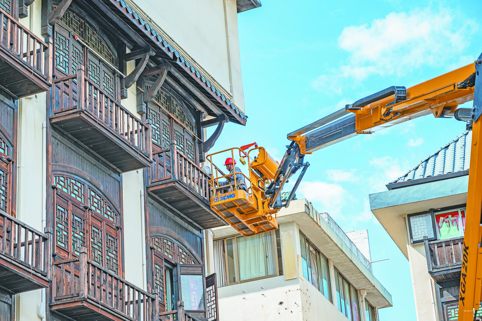 為防范臺風(fēng)天氣帶來的安全隱患,連日來,我市各鎮(zhèn)街積極開展高空墜物隱患排查整治,切實加強(qiáng)空中墜物的防范與管理。 工作人員重點對交通路牌、戶外廣告牌、店招店牌和建筑玻璃幕墻,以及所有建筑外立面、空調(diào)外機(jī)等高空構(gòu)筑物進(jìn)行安全隱患排查,對不符合安全要求,出現(xiàn)陳舊、破損現(xiàn)象的立即進(jìn)行更換或加固。 行動期間,工作人員還通過走訪入戶、面對面宣講、發(fā)放資料、張貼告示、推送微信信息等多種形式開展防高空墜物等教育宣傳活動,營造良好社會氛圍。圖為佛堂鎮(zhèn)工作人員正在排查佛堂新市基廣場附近樓房的外立面安全隱患。 |