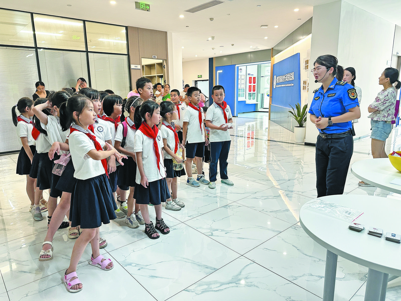 8月1日,佛堂小學二年級學生走進佛堂鎮(zhèn)綜合行政執(zhí)法隊,開展以“垃圾分類”為主題的執(zhí)法體驗活動。 “你們知道執(zhí)法隊員是干什么的嗎?”“我們請一位同學來帶領大家讀一下這個順口溜!薄诜鹛面(zhèn)綜合執(zhí)法大樓二樓全域智治中心,工作人員以PPT的形式介紹日常執(zhí)法工作,并編成了普法順口溜。隨后,大家一起觀看宣傳片《垃圾分類跟我學》,在朗朗上口的音樂快板中“沉浸式”學習垃圾分類常識。 看完宣傳片,工作人員還組織開展了“垃圾分類趣味投擲沙包”游戲。學生們分成四組進行比賽,獲勝的隊伍獎勵坐執(zhí)法車體驗一次!坝推嵬笆怯泻佑蚁陆!薄拜p一點,太重了會掉下去。”……學生們一個個都鉚足了勁,想要獲勝贏得坐車體驗。經(jīng)過激烈角逐,獲勝的隊伍開開心心地坐上了執(zhí)法車,其他同學則在工作人員帶領下前往佛堂寶龍廣場,對周邊商戶開展垃圾分類宣傳。 “叔叔,這是垃圾分類宣傳冊,送給你。平時要做好垃圾分類哦!薄昂玫,謝謝小朋友。”商戶接過宣傳冊,并給予了肯定的反饋。佛堂鎮(zhèn)綜合行政執(zhí)法隊相關負責人表示,開展執(zhí)法體驗活動,一方面讓更多的人了解執(zhí)法工作,另一方面提升了執(zhí)法柔性,拉近了與管理服務對象的距離,在潛移默化中助力營商環(huán)境得到優(yōu)化。 |