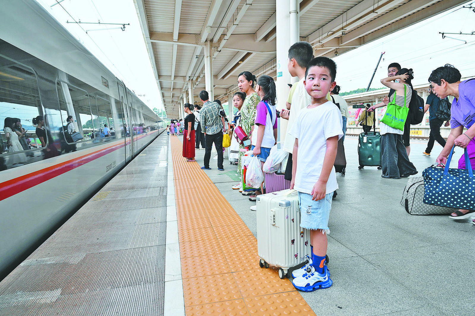 “回家后要好好聽爺爺奶奶的話,等再過幾天過了生日,你就是11歲的大孩子了!弊蛉丈衔,鐵路義烏站停車場通道上,一位媽媽紅著眼眶,牽著及肩高的兒子的手,邊走邊殷殷囑咐。 進(jìn)站口大門的一塊迎亞運文明宣傳展板前,兩個小女孩或奔跑,或跳躍,手上比出“耶”的姿勢,臉上洋溢著燦爛的笑容。在她們身前,父母不斷按下手機(jī)快門,定格孩子們回鄉(xiāng)前在義烏的每個瞬間。 候車大廳一角,三個孩子身邊堆放著大包小包的行李,手上緊緊抱著積木、小汽車等玩具,媽媽在一旁將行李分類整理好,而后牽著最小孩子的手,領(lǐng)著大家走向了檢票閘口。 …… 連日來,相似場景每天都會在鐵路義烏站上演。隨著兩個月的暑假接近尾聲,許多從老家趕來與父母相聚的“小候鳥”陸續(xù)踏上了回家的路,為新學(xué)期開學(xué)作準(zhǔn)備。記者從鐵路義烏站了解到,8月是“小候鳥”們的返程高峰,截至8月27日,鐵路義烏站已累計發(fā)送旅客85萬余人,日均發(fā)送旅客3.16萬人,其中,“小候鳥”及其親屬占了很大的比例。 “你們看,這里是10號站臺的候車廳,我們一會要從10站臺上車,就在這里找位置坐下吧!焙蜍嚧髲d二樓,張明慶邊走邊為一雙兒女介紹乘車的過程和注意事項。張明慶是湖北荊門人,與妻子在義烏做電商已有七八年時間。8月9日,9歲的女兒月月和6歲的兒子行行由奶奶帶著來到義烏!拔蚁矚g新光匯,涼快!還有很多玩具店!苯徽勚,第一次來到義烏的行行高興地說,語氣中難掩興奮,“爸爸給我買了好多玩具,等快遞寄到家之后,我會和朋友分享的!” 11歲的怡靈帶著6歲的弟弟圣亮在電梯旁等著爸爸買東西回來,姐弟倆都背著在義烏買的嶄新書包,里面裝滿了要帶回老家的零食和新衣服。怡靈說,自己來自江西贛州,爸爸近幾年在義烏做外貿(mào)生意,媽媽則在老家照顧自己和弟弟。7月初,怡靈的爸爸管先生特意回老家接了兒女來義烏過暑假,兩個月里帶他們玩了國際商貿(mào)城、橫店影視城、夢幻谷等地!敖衲暌詠,外貿(mào)生意逐漸轉(zhuǎn)好,我也越來越忙。雖然今年暑假接他們來了義烏,但其實也沒帶他們?nèi)ズ芏嗟胤,只能下次來了再補(bǔ)吧!惫芟壬鸁o奈笑著說。為了盡量多參與孩子的成長,寒暑假之外,管先生總會定期回老家看一看,給孩子們帶點吃的用的,他認(rèn)為,工作固然重要,孩子的成長更為珍貴,不容忽視。 這天,邵平英要獨自帶著三個孩子回江西弋陽老家!昂⒆影职质亲雒揽p的,這段時間太忙了,本來說一起送他們回去,這馬上臨近開學(xué)了不能耽擱,我就讓他先顧好工作,我從廠里請假送孩子們回家。”幸而,三個孩子都很懂事,在媽媽的安排下坐在候車廳的座位上安安靜靜吃著午飯,吃完后,還收拾好垃圾、擦干凈了凳子。 回憶起和爸爸媽媽一起在義烏生活的近兩個月,大女兒嘟嘟害羞地說,好玩的太多了,都分不清哪個更好玩,以后還想再來。并表示這段時間也看到爸爸媽媽工作都很辛苦,回去以后會好好學(xué)習(xí),看好妹妹和弟弟,讓爸爸媽媽可以安心上班。 聽著女兒的話,邵平英很欣慰:“三個孩子都上學(xué)了,以后家里開銷會更大。分隔兩地雖然于心不忍,但義烏的工作機(jī)會比老家多,現(xiàn)在看到孩子這么懂事,我也放心了不少!鄙燮接⒂媱澲,回家給三個孩子辦完新學(xué)期報到的各項手續(xù)后,自己就啟程返回義烏繼續(xù)工作,努力賺錢,讓家人過上更好的生活。 每年寒暑假,往返于義烏和家鄉(xiāng)之間的“小候鳥”都是一道特殊的“風(fēng)景”。往來奔波縱然辛苦,但因為有了希望,旅途便被賦予了更重要的意義。 |