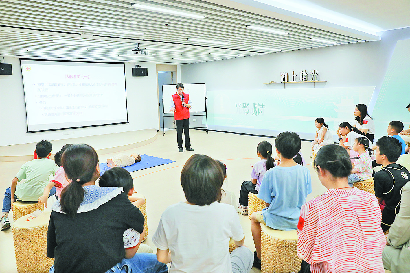 5月18日,市婦聯(lián)在市黨群服務(wù)中心舉辦“防溺水”安全教育講座,邀請(qǐng)義烏市第二人民醫(yī)院主任醫(yī)師余獻(xiàn)忠,為現(xiàn)場的小朋友們及家長上了一堂生動(dòng)安全教育課。 活動(dòng)現(xiàn)場,余獻(xiàn)忠通過動(dòng)畫演示、模擬操作以及互動(dòng)問答等形式,將“防溺水”安全知識(shí)轉(zhuǎn)化為孩子們易于理解的語言,還進(jìn)行了心肺復(fù)蘇——胸外按壓的示范、人工呼吸等技能演示,提醒孩子們提高安全意識(shí)和自我保護(hù)意識(shí),教育他們掌握發(fā)現(xiàn)有人溺水時(shí)的正確救援方法等。 |