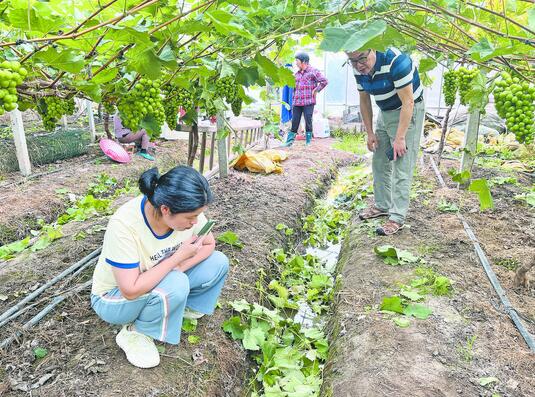 昨日,在義亭鎮(zhèn)葉前葡萄基地,農(nóng)技人員走訪了多個葡萄棚,現(xiàn)場查看葡萄生長情況,現(xiàn)場提醒種植戶密切關(guān)注后期天氣變化,及時做好肥水管理,防止發(fā)生葡萄裂果和日灼,同時確保排水通暢,控制田間水位,降低雨水對果實的影響。 當前我市夏黑、巨峰葡萄陸續(xù)上市,陽光玫瑰進入成熟期,持續(xù)降雨易造成田間積水過多,土壤水分飽和,棚內(nèi)濕度加大,會影響果樹根系生長和果實品質(zhì)。 連日來,根據(jù)天氣變化趨勢、農(nóng)作物生長周期等情況,市農(nóng)業(yè)農(nóng)村局強化農(nóng)業(yè)受災風險研判,切實做好領導帶班制24小時應急值班值守工作,保障上情下達、下情上報暢通,并通過農(nóng)民信箱、廣播電視臺、微信公眾號等及時發(fā)布天氣預警信息和技術(shù)措施,提醒農(nóng)戶做好防汛工作。與此同時,組織農(nóng)技人員分組到基地,指導農(nóng)戶及時做好農(nóng)業(yè)設施大棚加固修復、在田農(nóng)作物生產(chǎn)管理等活。 右圖為農(nóng)技人員在葡萄棚查看葡萄長勢。 |