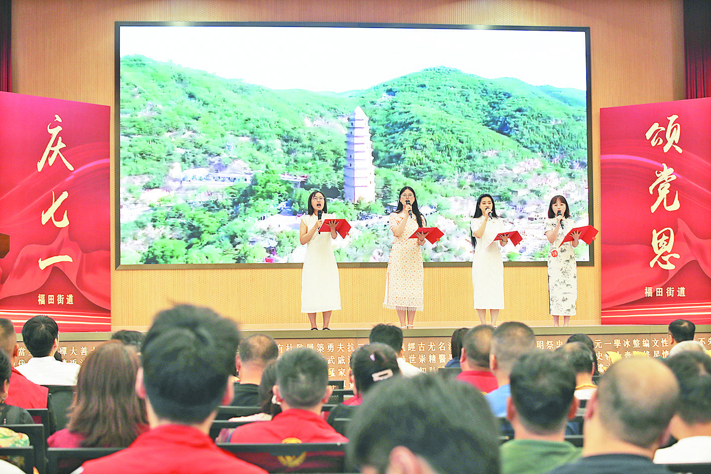 6月28日下午,福田街道組織開展“弘揚初心 筑夢韶華”慶“七一”系列主題活動;顒油ㄟ^“線上+線下”模式開展,主會場設(shè)在商城社區(qū)會議室內(nèi),各基層黨支部設(shè)分會場,共3800余名黨員干部同步參加學習。 活動現(xiàn)場,在福田街道黨工委主要負責人領(lǐng)誓下,全體黨員干部共同重溫入黨誓詞,感悟初心。鏗鏘有力的誓言在會場回響,莊嚴承諾踐行初心使命。隨后,全體黨員干部集體觀看了“初心語錄”視頻,并欣賞了“慶七一 頌黨恩”詩詞朗誦比賽中優(yōu)異選手帶來的《黨旗頌》。 活動中,福田街道領(lǐng)導班子還為25名黨齡達到50周年的老黨員頒發(fā)“光榮在黨50年”紀念章。這沉甸甸的紀念章,記錄的不僅僅是50載入黨時光,更是記錄了老黨員們的崇高品質(zhì),從而激勵廣大黨員干部努力在堅持黨的領(lǐng)導、推進黨的事業(yè)、做好黨的工作中創(chuàng)造新業(yè)績、作出新貢獻。 薪火相傳寫新章,銳意進取新征程。為進一步激發(fā)廣大黨員的創(chuàng)造性和積極性,凝聚起干事創(chuàng)業(yè)的磅礴力量,福田街道黨工委主要負責人以《學思踐悟 知紀明規(guī) 以鐵的紀律護航福田高質(zhì)量發(fā)展新征程》為題,為黨員們上了一堂生動的黨課,鼓勵廣大黨員干部,要敢于亮劍,在推動項目攻堅上帶頭示范,主動消除群眾顧慮、主動化解遺留問題,讓廣大群眾早一天享受改革與發(fā)展的紅利;敢于突破,在推動共富建設(shè)上帶頭示范,為建言獻策、開拓思路,激發(fā)更多民智民力,力爭實現(xiàn)“村村百萬”,努力打造更多共同富裕標志性成果;甘于奉獻,在推動服務(wù)群眾上帶頭示范,主動帶頭、志愿服務(wù),全力保障人民群眾生命財產(chǎn)安全;敢于創(chuàng)新,在推動隊伍建設(shè)上帶頭示范,落實三支隊伍建設(shè)“175N”工作體系,傾心引才、悉心育才、用心留才、真心愛才,不斷提升人才在福田融入度和歸屬感,讓更多人才在福田落地扎根、競相奔騰。 此外,今年是福田街道成立十周年,街道各基層黨組織還圍繞“弘揚初心 筑夢韶華”,廣泛開展“慶七一 頌黨恩”詩詞朗誦比賽、創(chuàng)業(yè)青年“夢工廠”黨員公益服務(wù)市集、展播優(yōu)秀黨員事跡、黨員干部深入一線蹲點調(diào)研、走訪慰問做好黨內(nèi)幫扶等慶“七一”系列主題活動。福田街道相關(guān)負責人表示,接下去,街道將以此次黨紀學習教育為契機,凝心聚力促發(fā)展,馳而不息抓落實,把黨紀學習教育成果轉(zhuǎn)化為高質(zhì)量發(fā)展成效,為“義烏發(fā)展經(jīng)驗”增添福田色彩,為全市跑好“打造典范、再造輝煌”第一程貢獻更多福田力量。 |