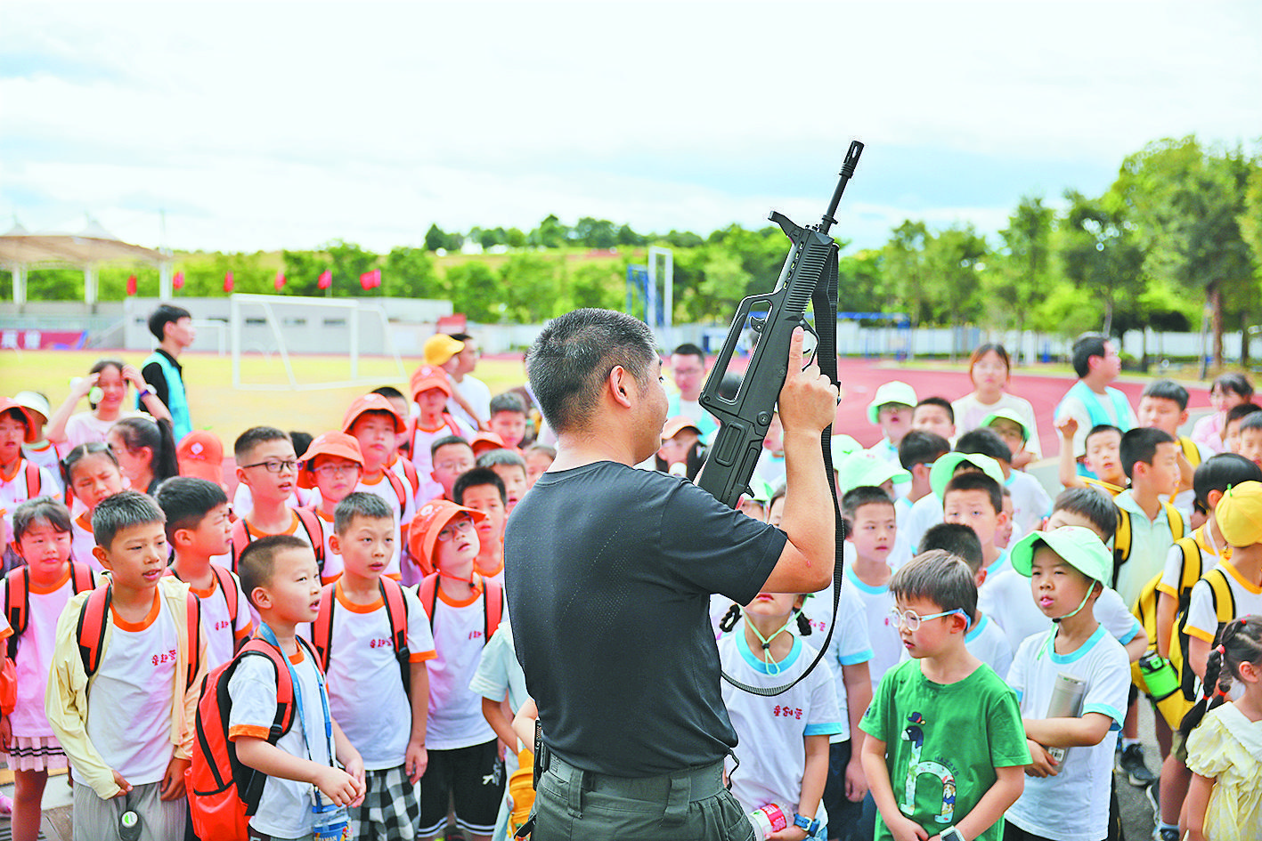 活動(dòng)現(xiàn)場,特警為學(xué)員們展示了特警裝備、無人機(jī)表演、警犬表演、警體拳等,并邀請學(xué)員們參與互動(dòng)游戲,沉浸式體驗(yàn)特警生活。