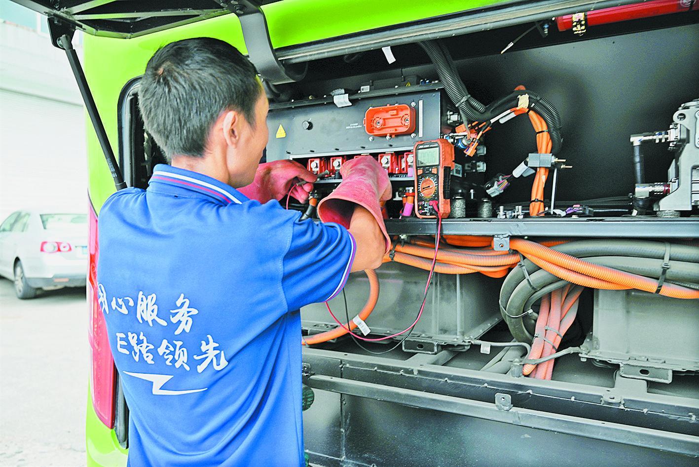 炎炎夏日,每當(dāng)乘客踏上公交車,就能感到陣陣涼意,在短暫的路途上享受舒適、安全的乘車環(huán)境。也許很少有人注意到,在公交車正常運(yùn)轉(zhuǎn)的背后,有這樣一群人,匍匐在車底,無(wú)懼熱浪,默默守護(hù)乘客平安。他們,就是公交車維修工人。 在恒風(fēng)汽車維修分公司的車間內(nèi),10余輛公交車正在排隊(duì)等待維修和保養(yǎng)。上午8點(diǎn),維修工樓丹峰開(kāi)啟了一天的工作。他輕輕一躍跳進(jìn)一米深左右的地溝中,在昏暗的空間內(nèi),拿起手電筒仔細(xì)檢查車輛底盤!捌骄6個(gè)月,我們就要給公交車做維護(hù)保養(yǎng),保證公交車能正常運(yùn)行。”樓丹峰告訴記者,夏季高溫天氣是公交車故障多發(fā)期,冷卻系統(tǒng)、剎車片、發(fā)動(dòng)機(jī)等都有可能存在安全隱患,因此必須做好“全身體檢”工作。 另一邊,幾位維修工人也各司其職,對(duì)輪胎、高壓電池倉(cāng)、空調(diào)、汽車內(nèi)部等進(jìn)行細(xì)致維護(hù)。據(jù)介紹,平時(shí)給一輛公交車做日常保養(yǎng),維修工人一個(gè)半小時(shí)左右就能完成,要是碰上“大問(wèn)題”,時(shí)間就難以把控了。汗水混著灰塵與油污,這是他們的工作常態(tài)。 在鋼棚搭建的車間內(nèi),夏季氣溫常常超過(guò)40℃,又悶又熱。為了保證通風(fēng)和安全,車間內(nèi)無(wú)法安裝空調(diào),只能用大型風(fēng)扇來(lái)降溫!懊刻煲贿M(jìn)車間,就像進(jìn)了‘蒸籠’一樣,十分悶熱。為了安全,我們必須穿著長(zhǎng)袖長(zhǎng)褲工作服,戴好手套才能工作,沒(méi)過(guò)一會(huì)衣服就濕透了!睒堑し逭f(shuō)。 記者了解到,目前恒風(fēng)汽車維修公司共負(fù)責(zé)全市約1100輛公交車的維護(hù)工作,其中新能源汽車約占80%。公司安全技術(shù)科科長(zhǎng)熊正茂回憶說(shuō),過(guò)去在給燃油公交車做維修工作時(shí),發(fā)動(dòng)機(jī)持續(xù)散發(fā)的熱量十分灼熱,往往要先用大型排風(fēng)扇對(duì)著吹20分鐘才能正常開(kāi)展工作,這對(duì)維修工人是一項(xiàng)極大的“烤”驗(yàn),如今的新能源公交車已經(jīng)大大減輕了這一負(fù)擔(dān)。 “為了給工人們做好后勤保障工作,我們?cè)O(shè)置了專門的休息間,配備了空調(diào)、礦泉水和防暑藥品,供大家納涼。每半個(gè)小時(shí),我們就‘強(qiáng)制’要求工人們休息一下,同時(shí),盡量避開(kāi)一天中最熱的時(shí)間段來(lái)工作,始終把工人的健康放在第一位!焙泔L(fēng)汽車維修公司相關(guān)負(fù)責(zé)人介紹說(shuō)。 |