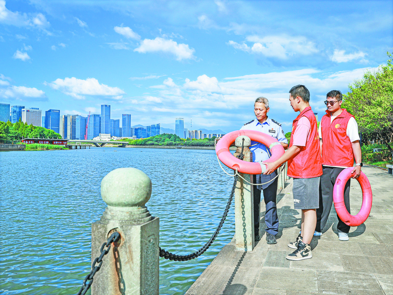 9月18日下午,市公安局江東派出所民警聯(lián)合社區(qū)志愿者,前往轄區(qū)的江邊、水庫(kù)檢查防溺水救生設(shè)備,對(duì)老舊的救生設(shè)備進(jìn)行更換,以確保設(shè)備在緊急情況下能用、好用。