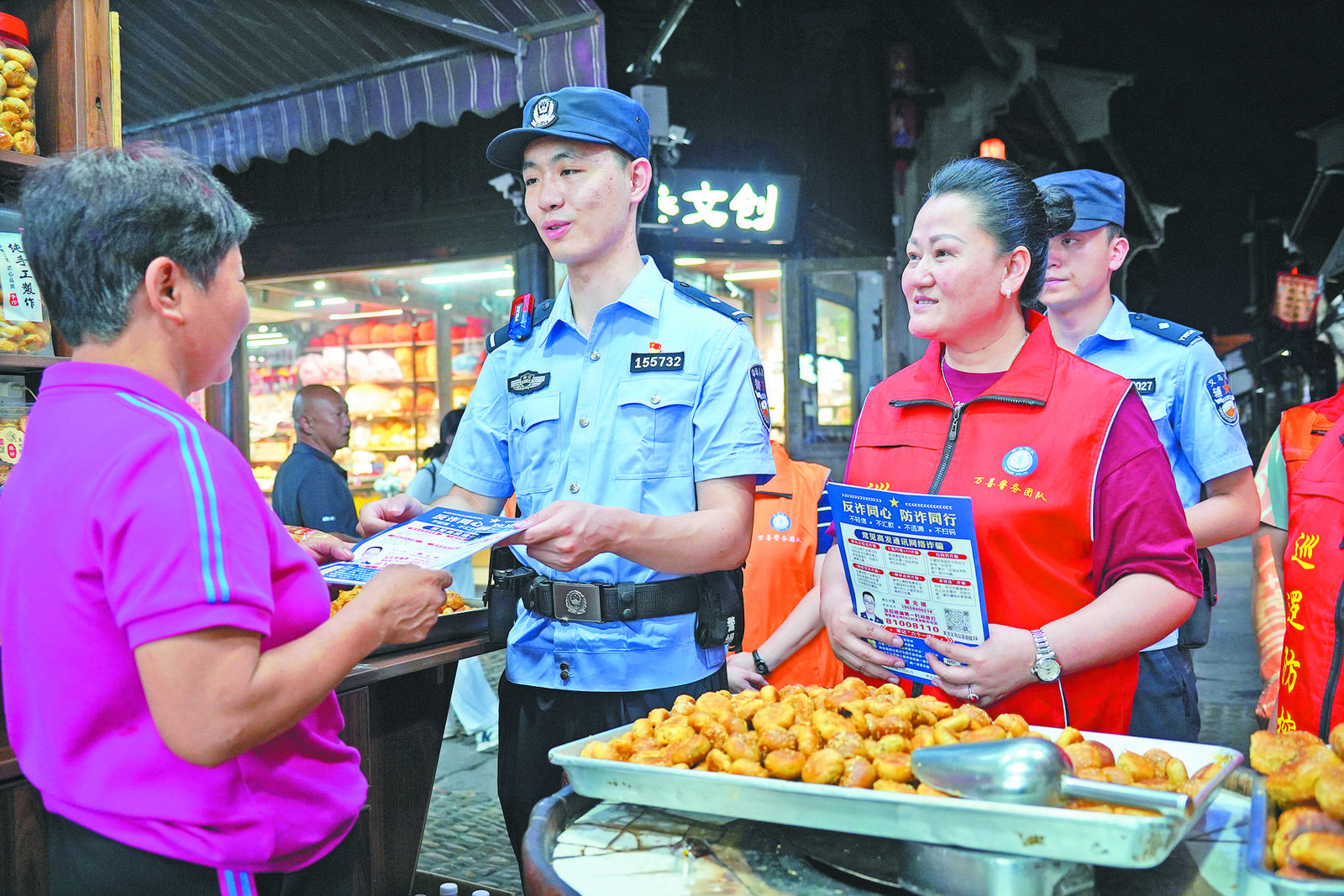 連日來,市公安局佛堂派出所民警帶領(lǐng)“萬善義警隊(duì)”深入佛堂老街開展治安巡邏,并向群眾宣傳防火、用電、反詐等安全知識(shí),以實(shí)際行動(dòng)筑牢夏夜安全防線。 巡邏中,民警與“萬善義警隊(duì)”成員沿老街重點(diǎn)區(qū)域、人員密集場(chǎng)所進(jìn)行徒步巡查,密切關(guān)注周邊治安動(dòng)態(tài),及時(shí)排查潛在安全隱患。其間,他們主動(dòng)向商戶和過往群眾發(fā)放安全宣傳資料,并結(jié)合夏季火災(zāi)高發(fā)、用電負(fù)荷增大、電信詐騙案件頻發(fā)等特點(diǎn),詳細(xì)講解防火注意事項(xiàng)、安全用電規(guī)范及常見反詐手段,提醒群眾提高安全防范意識(shí),共同維護(hù)轄區(qū)平安穩(wěn)定的治安環(huán)境。 |