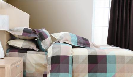 高檔小紅方格子窗簾 淘寶價(jià):20.00 - 546.00元 品牌: 越帛 使用窗型: 飄窗 八角窗 凸窗 落地窗 遮光功能: 裝飾+半遮光 布藝簾材質(zhì): 布簾+紗簾 成分: 棉 滌 圖案: 條紋 格子 幾何抽象 喜慶 計(jì)價(jià)貨號: 35TY 小編點(diǎn)評:紅色小格子加上綠色的紗幔充滿了田園的清爽氣息。在臥室可搭配一些田園風(fēng)格的墻紙和白色家具,會(huì)有意想不到的效果。 B:深色格子床單宜家時(shí)尚全棉四件套