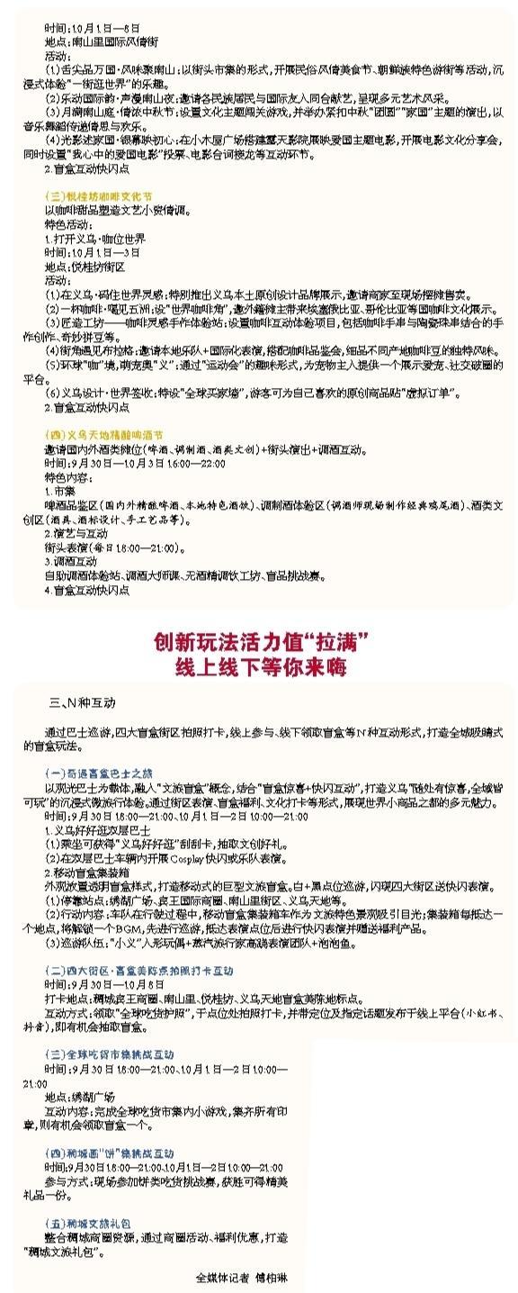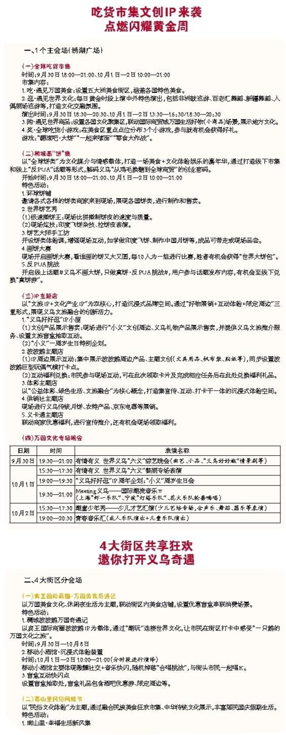 國(guó)慶中秋“超級(jí)黃金周”將至,除了賞明月、看美景,在義烏好好逛,還可以有一項(xiàng)非常重磅的過(guò)節(jié)選擇——全球吃貨節(jié)! “十一”假期,我市以深化“義烏好好逛”IP建設(shè)為抓手,以“品世界美食、逛世界文化、購(gòu)世界商品、玩互動(dòng)挑戰(zhàn)”為核心,舉辦全球吃貨節(jié)暨稠城萬(wàn)國(guó)文化周。活動(dòng)將以“1+4+N”模式(1個(gè)主會(huì)場(chǎng)+4大街區(qū)分會(huì)場(chǎng)+N種互動(dòng)),打造“打開(kāi)義烏·遇見(jiàn)世界”的沉浸式體驗(yàn),邀您在義烏“炫”萬(wàn)國(guó)美食。 |