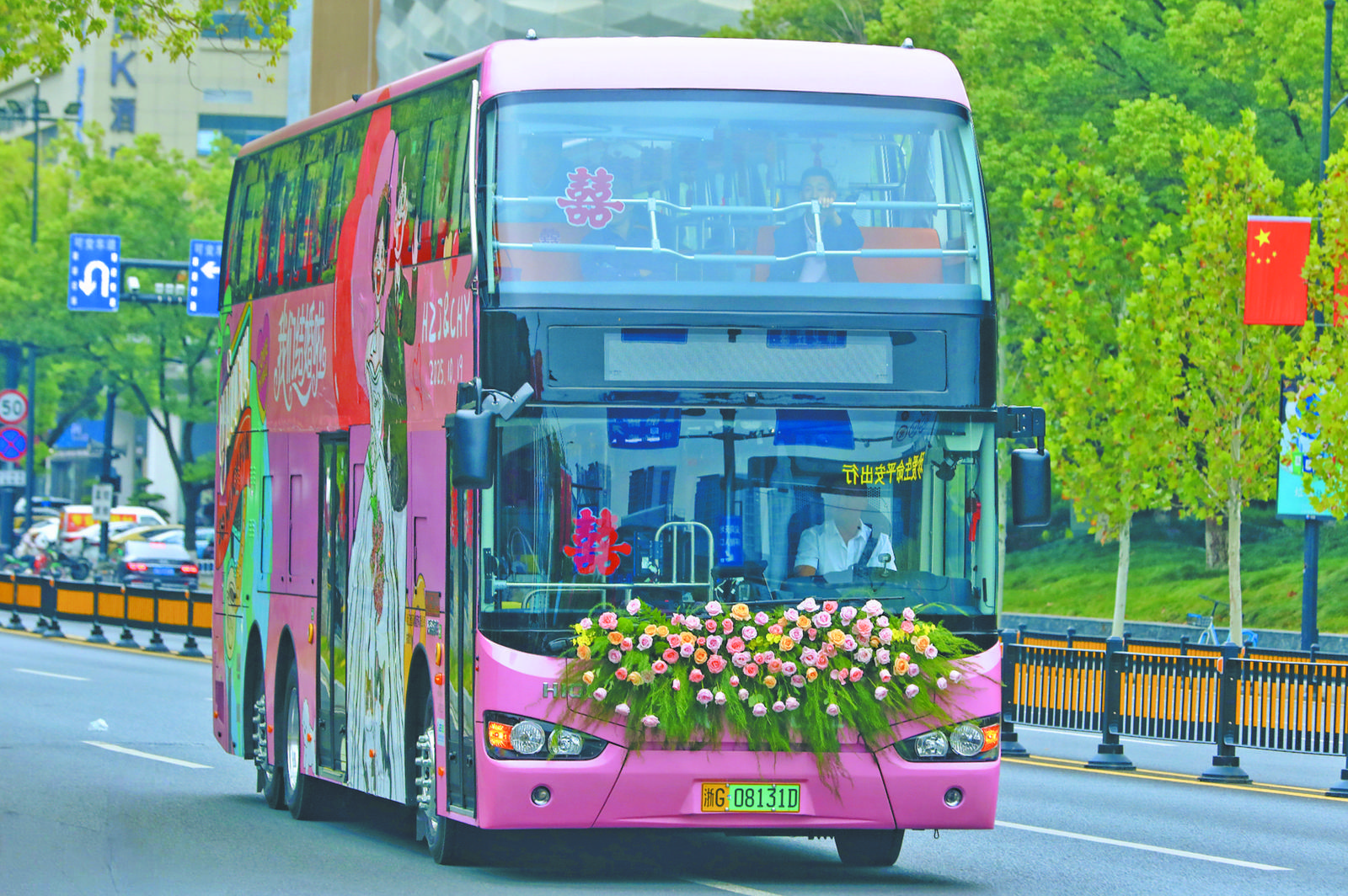10月19日清晨,一輛“身披”新人卡通形象、綴滿鮮花的粉色雙層巴士緩緩駛過義烏街頭,車窗上貼著巨大的“喜”字,車身懸掛著“我們結(jié)婚啦”標語,引得行人紛紛駐足拍照。這是新郎胡孜境與新娘陳海燕的“專屬婚車”——他們正用這座城市最特別的交通工具,開啟人生重要的幸福旅程。 早上6點30分,身著禮服的新郎胡孜境坐在巴士二層首排,指尖輕輕敲打著座椅扶手。“待會就要見到她了”,他望著窗外逐漸蘇醒的城市喃喃自語。當巴士駛?cè)胄履锛宜谛^(qū)時,等候多時的親友們發(fā)出陣陣歡呼。 新娘陳海燕身著嫁衣,緩緩踏上巴士,二層瞬間化作移動的“喜慶殿堂”。親友們圍著新人拋撒花瓣,車載音響播放婚禮贊歌,整輛車仿佛漂浮在幸福的聲浪中。透過全景車窗,義烏國際商貿(mào)城、義烏全球數(shù)貿(mào)中心等城市地標依次掠過,為這場婚禮鋪開獨一無二的背景畫卷。 “雙層巴士剛運營時,我們就乘坐體驗了,一時間被巴士寬敞的空間、開闊的視野,以及串聯(lián)城市多個地標與夜間經(jīng)濟體的特色所吸引,便萌生了用雙層巴士作婚車的想法!标惡Q嘈χf。這個創(chuàng)意得到了恒風集團的全力支持。工作人員連夜布置車廂,車身貼上新人卡通形象,再懸掛上婚禮的日期與標語,車窗貼上大紅“喜”字,公交車就這樣變身為承載幸福的“愛情專列”。 行駛途中,這輛特別的婚車成為街頭焦點。私家車主動讓行并鳴笛祝福,路邊小朋友踮腳揮舞雙手,買菜阿姨笑著豎起大拇指。當巴士經(jīng)過繡湖廣場時,一群鴿子振翅飛過,仿佛為新人獻上空中舞蹈。 “比起傳統(tǒng)婚車車隊,這樣既特別又低碳!焙尉晨粗鴿M車歡笑的親友感慨。雙方長輩并排坐在一層沙發(fā)上閑聊,年輕人則在二層拍照唱歌,這種其樂融融的場景在封閉的轎車里難以實現(xiàn)。 “這是雙層巴士首次擔任婚車角色,也希望這種模式推動義烏‘甜蜜經(jīng)濟’往簡約、環(huán)保的方向發(fā)展!焙泔L集團相關(guān)負責人表示,雙層巴士的投放,是以高質(zhì)量公交發(fā)展增強城市名片底色,服務(wù)城市能級躍升。此次成為婚車是巴士功能的創(chuàng)意延伸,為更多追求個性的年輕人提供可借鑒的范本,鼓勵大家用更綠色、更環(huán)保的方式慶祝人生重要時刻。據(jù)悉,恒風集團還將考慮推出更多個性化巴士服務(wù),讓公共交通更好地融入市民生活的方方面面。 “雙層巴士開通以來,得到了市民的廣泛認可,社會的關(guān)注度也比較高。為了回饋大家的支持,我們針對雙層巴士推出了一些定制化的個性活動,歡迎廣大市民積極參與。同時,我們也鼓勵廣大市民提倡綠色環(huán)保出行,共同營造一個良好的城市形象!焙泔L公交分公司營運發(fā)展部副主任蔣興陽表示。 陽光透過全景天窗灑在新人交握的手上,巴士正駛向婚姻的下一站。這趟載滿幸福的“愛情專列”,不僅見證了兩個人的誓言,更詮釋了一座城市公共服務(wù)的溫度——當創(chuàng)新與溫情相遇,日常出行也能變成生命中閃亮的記憶點。 |