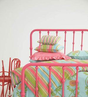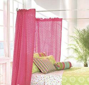 一抹柔和亮麗的艷粉色床幔,搭配草綠色的床品,小女生的甜美感覺展露無遺。