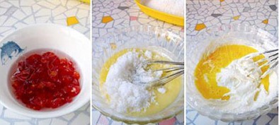 原料: 低粉140克、黃油140克、雞蛋3只、白砂糖100克、圣女果干30克、朗姆酒30ML、泡打粉5克。 做法: 1 圣女果干切碎,用朗姆酒浸泡20分鐘。 2 黃油軟化后加入細(xì)砂糖打至發(fā)白體積變大。 3 雞蛋提前打散,分次加到打發(fā)的黃油中,每加一次都要充分?jǐn)噭颉?/FONT> 4 篩入低粉和泡打粉。 5 慢慢小心的用刮刀翻拌均勻呈面糊狀。