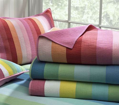 這款彩虹色的床品共有三種款式,藍(lán)綠色系的清涼干練款,紅粉色系的純美女人風(fēng)還有就是七彩的甜美可愛款;冬天為自己添置這樣一款床品無異于給臥室畫上了一個(gè)甜美的妝容。