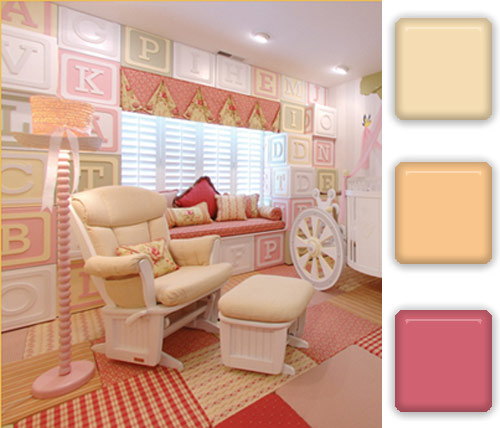 整個(gè)空間被淡淡的橙黃色、粉色所覆蓋,輕柔溫和。黃色的布藝大沙發(fā),坐上去一定很舒服吧。 |