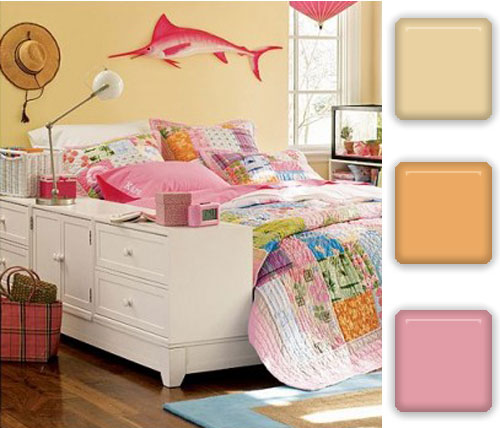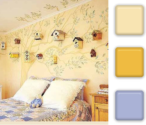 充滿溫馨的色彩,蘊涵著孩子對美好事物的追求和憧憬,采用橙黃黃色整體裝飾的兒童房光線清淡柔和。