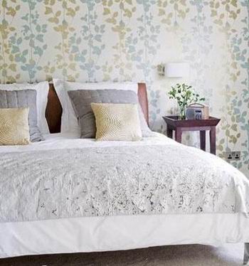 金色的靠墊,淺灰花紋的床品和淡雅的背景墻相呼應(yīng),給你一個(gè)清新明亮的臥室。