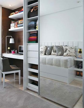 更衣室與工作室合并,空間被有效充分的利用。衣柜的門鏡設(shè)計,延伸空間感。