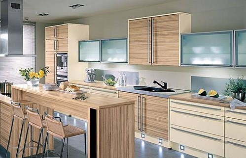 一套木紋櫥柜營(yíng)造出溫馨感,這算是櫥柜的經(jīng)典款,第一次見面不會(huì)驚艷,隨時(shí)時(shí)間的推移,也不那么容易產(chǎn)生視覺疲勞。櫥柜呈“U”型,外側(cè)的吧臺(tái)最貼心,給廚房生活添加浪漫,夫妻二人面面相對(duì),為心愛的另一半烹飪,看著心愛的人為自己下廚,都是非常愉快的事。