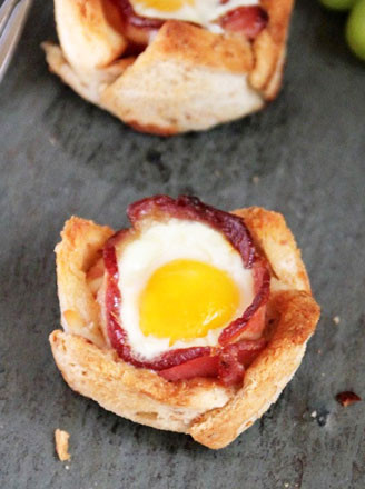 培根,雞蛋 ,面包西式早點(diǎn)最常見的材料,這款西式早點(diǎn)不但把培根和雞蛋很好的結(jié)合還配上香脆的烤面包做容器,做起來簡(jiǎn)單容易,而且好看好吃 ,制作者還可以加上自己的愛好口味自由發(fā)揮。 |