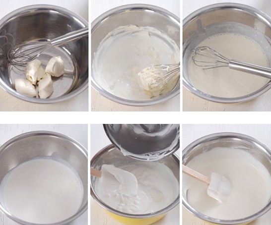1.酸奶芝士液(奶油奶酪125g,白砂糖30g,酸奶150g,吉利丁片1片半(5g/片),牛奶50g,淡奶油90g):提前把1片半的吉利丁片涼水泡軟,瀝干放入50g牛奶中隔熱水融化。奶油奶酪室溫軟化,加入糖和酸奶打至細(xì)膩光滑的狀態(tài),倒入吉利丁牛奶液(或者把所有材料直接入料理機(jī)打勻更省事),淡奶油打至6-7分發(fā),倒入剛剛拌好的液里。拌勻即成酸奶芝士液。備用
