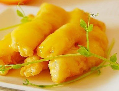 橙汁魚片 原料:橙子、魚片 烹飪方法:先將橙子去皮切成丁。在吉士粉中加入適量的果汁,再加水調(diào)開,以小火煮沸,放入切成丁的鮮橙和糖調(diào)勻后備用。將魚切成片狀,加入酒與鹽腌制片刻;用蛋白與面粉加少許水做成面糊,將魚片沾上面糊后放入油鍋中滑油。最后,將煮好的橙汁淋上魚片拌勻即可。 作用:用新鮮水果入菜,是健康飲食的一種新趨勢。橙子含有豐富的維生素C,能幫助鐵質(zhì)的吸收,預(yù)防貧血,助消化,又可保護(hù)血管,維護(hù)牙齒和牙齦的健康。 山藥蝦球 原料:蝦仁、山藥粉、雞蛋 烹飪方法:先將蝦仁剁碎做成蝦茸,加入山藥粉與適量的鹽、味精、黃酒、蔥、雞蛋、生粉、攪拌均勻,然后做成一個個小丸子,放入油鍋里煎炸,最后用少許水、醬油、糖,與炸好的丸子燜燒一會兒即可出鍋。 作用:山藥具有益脾開胃之功效,這道菜適宜脾虛、食少的幼兒食用。 |