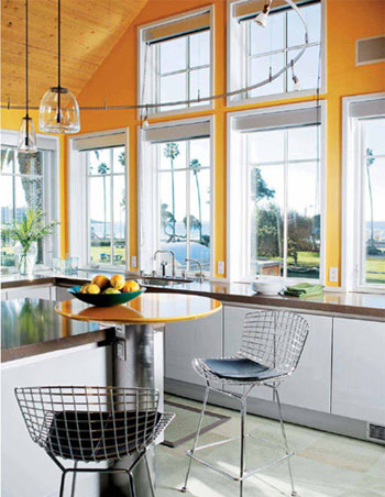 如果想在廚房中添加一個小型餐桌,不妨將它和島臺組合在一起。把不銹鋼立柱式小餐臺安裝到島臺一側(cè),將它與島臺錯落式組合在一起,再放上兩把餐椅,即可成為實用的小餐臺。同時,你還可以將插座安裝在餐桌腿部,小電器便可輕松使用。
