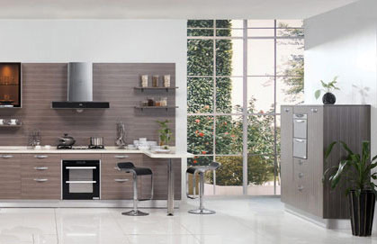 產(chǎn)品介紹:金牌廚柜睿簡系列花想容琥珀質(zhì)感的茶色亞克力迪姆鋁框門,別致美觀且安全性能良好;似木紋的現(xiàn)代線形紋理門板,手感極好,帶吧臺的設(shè)計專為熱愛生活的時尚小資人士;門板具有抗刮劃、防潮腐的特性,既美觀又實用。 推薦產(chǎn)品二:百V櫥柜夢幻晶體