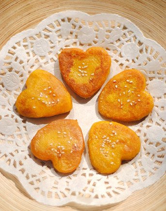 8、平底鍋放少許油,將南瓜餅煎至兩面金黃即可。 |
