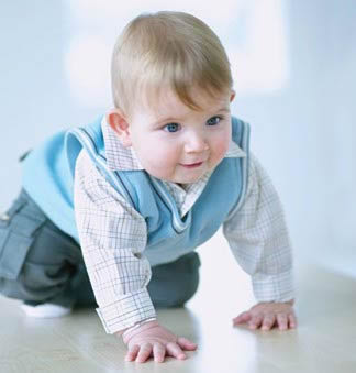 鼓勵(lì)寶寶早爬行、多爬行,可顯著地幫助寶寶大腦發(fā)育,使大腦對(duì)手、足、眼的神經(jīng)運(yùn)動(dòng)調(diào)控得以加強(qiáng),啟迪與開拓寶寶的智力潛能。研究資料顯示:會(huì)爬、早爬與多爬的寶寶動(dòng)作舉止比較靈敏,協(xié)調(diào)能力好,懂事快,求知欲強(qiáng),而不喜爬行的寶寶多顯呆板、遲鈍、情緒低,不愛接觸新人、新事。同時(shí),爬行好和好爬行的寶寶認(rèn)知力強(qiáng),看圖識(shí)字、語音構(gòu)成與發(fā)聲能力,以及日后行走、跑步的平穩(wěn)程度等均好于遲爬或爬動(dòng)少的孩子。 簡單的爬行活動(dòng)何來如此神功? 首先,當(dāng)寶寶在襁褓中時(shí),視聽范圍很;坐著或躺著時(shí),視聽范圍略有擴(kuò)大,但得到的刺激仍然不夠。而爬行則使視聽范圍大幅度擴(kuò)大,姿態(tài)由靜到動(dòng),范圍由點(diǎn)到面,刺激量大了,思維、語言與想像能力自然得到了發(fā)展與提高。 同時(shí),爬行對(duì)于腦部有直接的促進(jìn)作用,中腦是最大的受益者。從腦的解剖結(jié)構(gòu)看,中腦是腦干(人的生命中樞所在地)的一個(gè)重要組成部分,上面排列著視覺與聽覺兩大反射中樞,是主管聽聲音與看東西的“總部”,它上傳外界信息,下達(dá)大腦命令。爬行擴(kuò)大了視聽范圍后,中腦受到的刺激就得以強(qiáng)化;而促進(jìn)了中腦的功能,無疑會(huì)使整個(gè)腦的功能“更上一層樓”。除了中腦,爬行對(duì)小腦的積極影響也不可小視。小腦是主管人體運(yùn)動(dòng)平衡的,而爬行屬于全身運(yùn)動(dòng),可訓(xùn)練小腦的平衡與反應(yīng)聯(lián)系,促進(jìn)神經(jīng)纖維相互纏繞形成網(wǎng)絡(luò),有利于腦神經(jīng)系統(tǒng)結(jié)構(gòu)的完善,必然會(huì)對(duì)寶寶學(xué)習(xí)語言與閱讀發(fā)揮良好影響。 再者,爬行動(dòng)作由最初的爬行反射,經(jīng)過抬頭、翻身、打滾、匍行等中間環(huán)節(jié),最終發(fā)展成真正的爬行,需要經(jīng)歷多次的學(xué)習(xí)、實(shí)踐;每一次學(xué)習(xí)與實(shí)踐都是一次對(duì)大腦積極性的調(diào)動(dòng)與激發(fā)。因此,學(xué)習(xí)爬行其實(shí)就是對(duì)腦神經(jīng)系統(tǒng)功能的一次強(qiáng)化訓(xùn)練,對(duì)于腦的發(fā)育具有不可替代的特殊作用。 不用教,幾乎每個(gè)孩子都會(huì)爬;可是要爬得更早、更快、更好、更有益,建議你參考一下科學(xué)的爬行模式。 爬行能力發(fā)展的三個(gè)階段: 抵足爬行: 用手抵住寶寶兩只小腳,使腿呈現(xiàn)蛙形,他就會(huì)趁勢(shì)以腹部為支點(diǎn)向前爬行。這是新生兒開始就有的能力。 手膝爬行: 8-12個(gè)月,寶寶能夠用手和膝蓋支撐身體爬行。 手足爬行: 1歲左右,寶寶能夠用兩手和兩腳掌支撐身體,向前爬行。 爬行訓(xùn)練和游戲: 抵足爬行: 讓寶寶俯臥在床上,父母用手掌頂住寶寶的腳,他就會(huì)自動(dòng)地蹬住你的手往前爬。開始時(shí)寶寶可能還不會(huì)用手使勁,整個(gè)身子也不能抬高離開床,大人不妨從旁扶助他的身子,必要時(shí)可用一點(diǎn)外力幫助孩子前進(jìn)。每天練習(xí)2-4次,每次爬行2-4米,要天天堅(jiān)持。 上肢準(zhǔn)備:俯臥抬頭兩臂撐起上半身:可用鏡子、玩具、畫報(bào)、人臉逗引寶寶抬頭。出生15天后可適當(dāng)練習(xí);滿月后每天3-4次,可累計(jì)半小時(shí)。 單臂支撐體重: 當(dāng)寶寶學(xué)會(huì)上述動(dòng)作后,可在其俯臥時(shí),用玩具在他一側(cè)手臂上方逗引他夠玩具,就在其抓夠的一瞬間,便練習(xí)了單臂支撐體重,兩臂可輪流練習(xí)。前臂交叉練習(xí):寶寶俯臥在床邊,您在床沿,把兩手掌向上, 墊在寶寶的掌下,前面用玩具逗引,交叉移動(dòng)你的手掌,帶動(dòng)寶寶兩臂交叉運(yùn)動(dòng)。 下肢準(zhǔn)備: 3-4個(gè)月左右,可將寶寶跪抱在你的大腿上,或當(dāng)你仰臥時(shí),讓他跪在你的體側(cè),手扶著你的身體;可和他一起看畫報(bào)、念兒歌、玩玩具,使寶寶鍛煉膝部的支撐力量。兩腿交叉運(yùn)動(dòng): 寶寶腹下墊上枕頭呈俯臥位,你用雙手抓住寶寶踝部,做前后交叉運(yùn)動(dòng)。 四肢協(xié)調(diào)爬行: 讓寶寶手膝(或手足)著地,腹部離開床面,四肢協(xié)調(diào)爬行。若寶寶腹部不能離開床面或不能向前移動(dòng),可用手托住寶寶腹部或用長圍巾兜住腹部,用玩具誘導(dǎo)他爬行。爬行游戲當(dāng)寶寶會(huì)手膝爬行后,就可以做爬行游戲了。 游戲1:坐伏抓物 把寶寶喜歡的一件玩具放在他(她)身體不遠(yuǎn)處,寶寶只要由坐位向前趴下,變成俯臥位能抓得著就可以。雖然并不能算爬,但這是爬的前奏,在學(xué)爬之前,寶寶能喜歡趴在床上,做好爬行前的預(yù)備動(dòng)作。開始可將玩具放在寶寶面前不遠(yuǎn)處,以后可放在他(她)身體左邊、右邊,甚至是后邊,只要寶寶一轉(zhuǎn)頭看見了,就能俯下身去拿。 游戲2:助力行動(dòng) 當(dāng)寶寶學(xué)爬時(shí),四肢如何協(xié)調(diào)一致地運(yùn)動(dòng)成為最不易突破的難題,他們經(jīng)常是顧得了手卻顧不了腳。這時(shí)家長可以站在寶寶身后,兩個(gè)手掌放在寶寶腳底,推動(dòng)寶寶一只腳,當(dāng)他(她)往前爬一點(diǎn)時(shí),再推動(dòng)另一只腳,如此協(xié)助,幫他(她)渡過爬行關(guān)。 游戲3:鉆“ 山洞” 家里若是有裝冰箱、洗衣機(jī)的空紙箱, 
