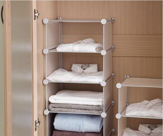 封閉衣柜巧分割 保護(hù)衣物不被壓(衣柜有個“變形金剛”) 大多數(shù)家庭,臥室中的衣柜往往會有空間相對封閉,尺寸設(shè)計限制,衣物不易拿取的問題;而小件衣物例如內(nèi)衣又容易壓壞,有什么辦法能讓衣柜變得“神奇”起來呢? 秘訣就在于善用收納組合架,可針對個人需求無限組裝,合理分割衣柜,不僅幫助把內(nèi)衣、襪子都分開放置,而且釋放出更多小空間,提高衣柜的空間使用效率,使你的衣柜更好用。對于一些特別需要保護(hù)的衣物,例如西褲、領(lǐng)帶、絲巾和配飾、內(nèi)衣等,分層分類存放,一目了然,省去了翻找煩惱。