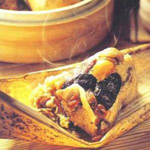3.糯米和加工好的配料混合包入葦葉中,用水煮1小時(shí)即可食用。